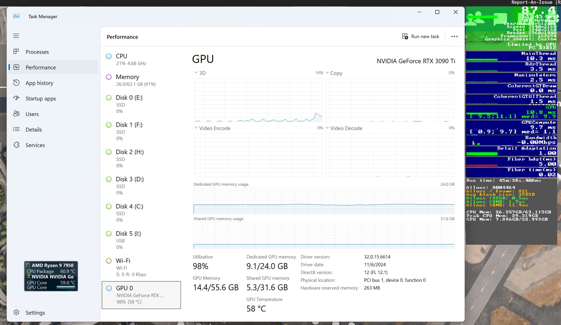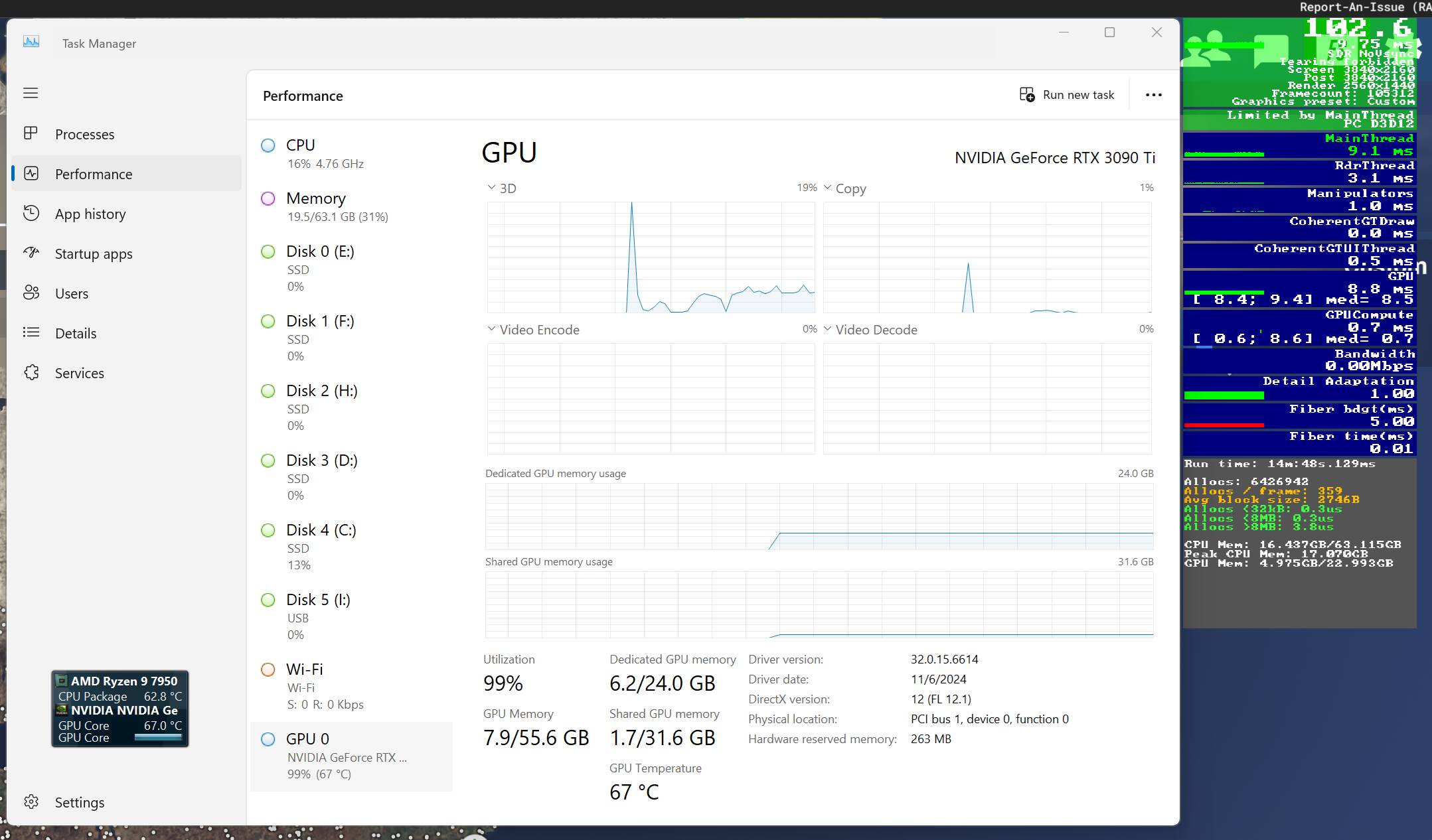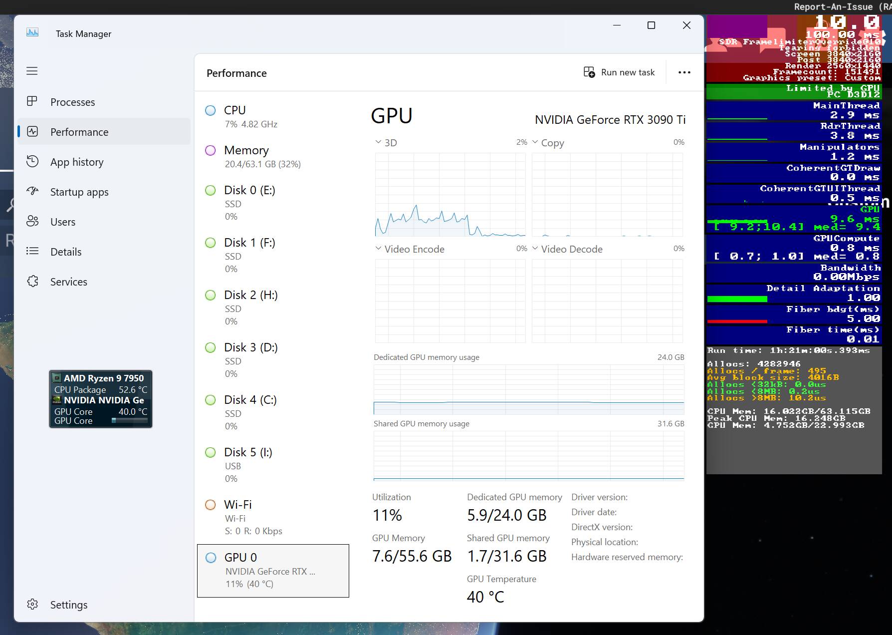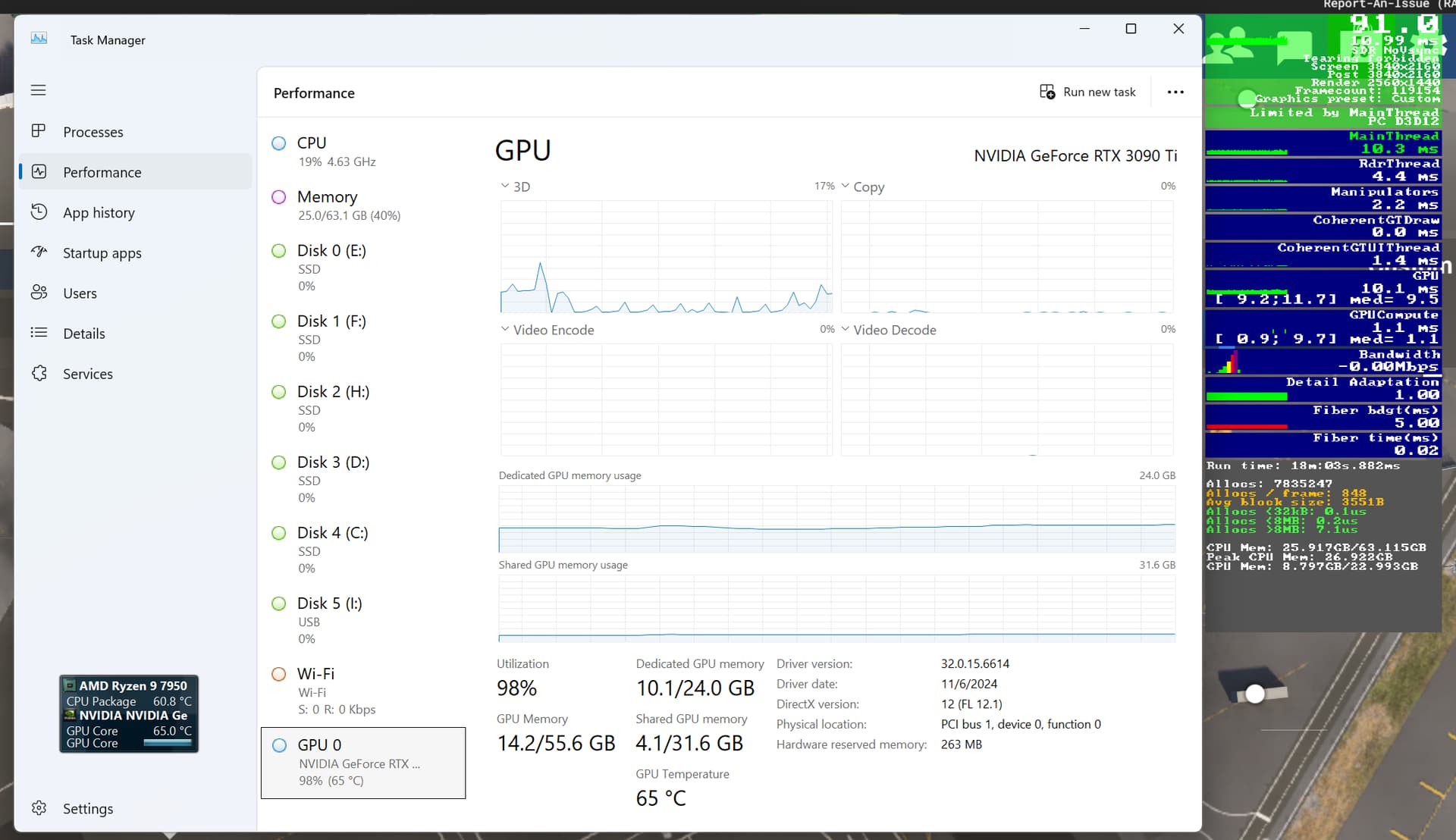 image taken after changing the server, even if the vram is almost saturated the fps does not drop. hope this helps you.
