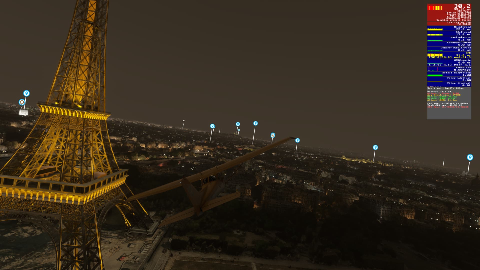 The last thing I did was let the screen sit for an hour while zoomed in. No change, except for the weird drop in GPU usage after staying static on the zoomed in airport. Maybe the GPU just doesn’t have anything to do, so the sim drops FPS.