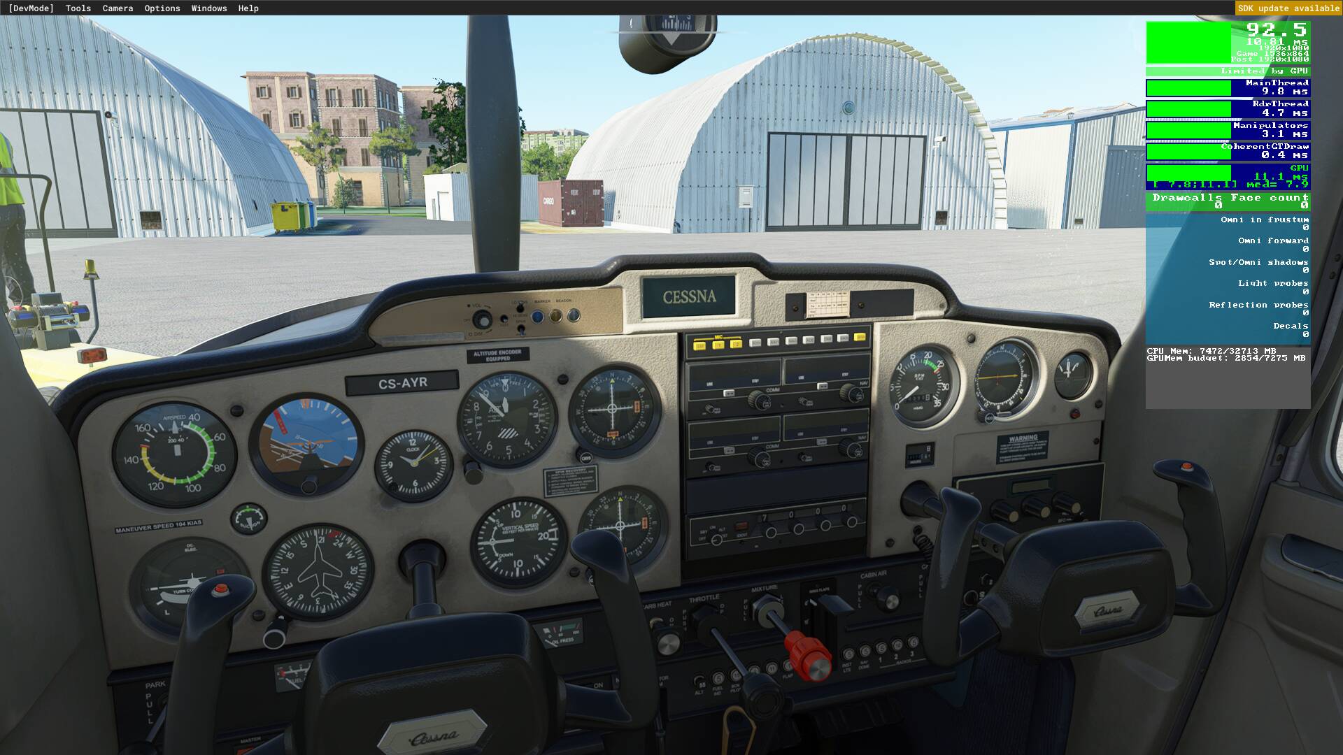 For me it’s always the glass cockpit screens. I can get 40-50 FPS in the Robin or Cessna 172, and 20-25 in the C208B or King Air 350i. Seriously frustrating. ![]()