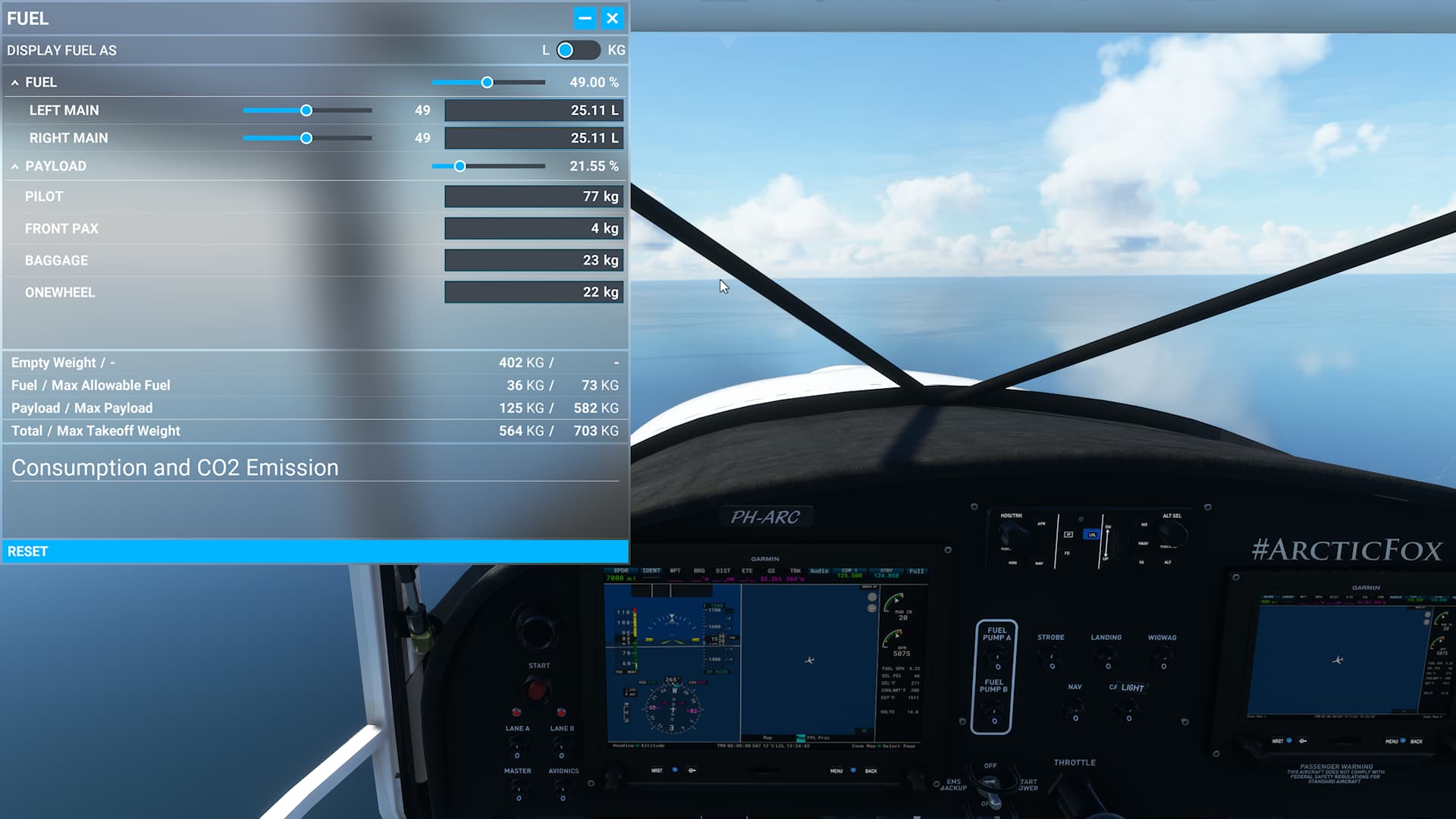 Yes Iāve just figured out a workaround for this. In the fuel dialogue you can edit the onewheel mass. I found that 22kg for the onewheel, and the default bag on the passenger seat with nothing else changed would balance the low and slow variant at 1500ft and 85kt. The picture below shows the bank after 60 seconds, it is maybe 1-2 degrees? This is much better and quite hand flyable now. 23kg gave the same amount of error in the other direction.