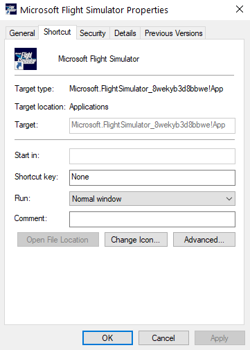 Thanks for the reply folks. I looked tor the exe file on my ssd drive but could not locate anything that referred to the sim. I also tried the right click on properties and found that the shortcut target did seem to be correct. I took the path information and typed it in the windows search bar but it only led to a webpage. Could either of you tell me what the correct path is to the exe on my desktop ?