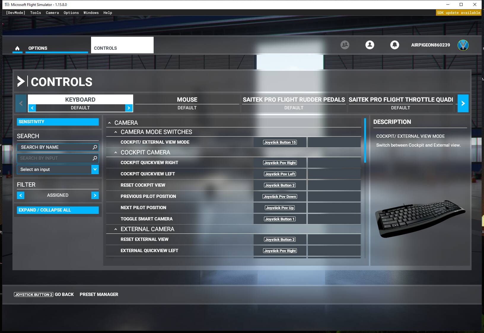 This is really strange, fs 2020 thinks my keyboard is a joystick, most of the time, see image. Also keyboard input is reversed, as I type the second letter appears to the left of the first, weird. Posted a zen desk ticket but don’t hold out a lot of hope. Tried different keyboard and different USB port not change.