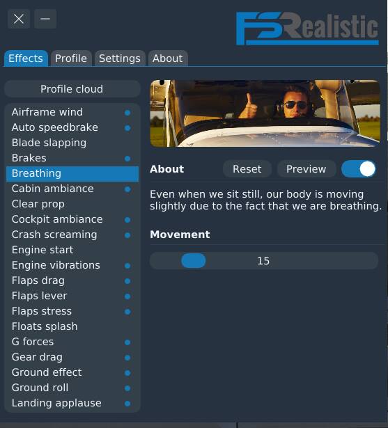 Once in the sim, and FSR has launched itself, maximize it from the taskbar, select the profile and scroll through to find coughing and disable it.