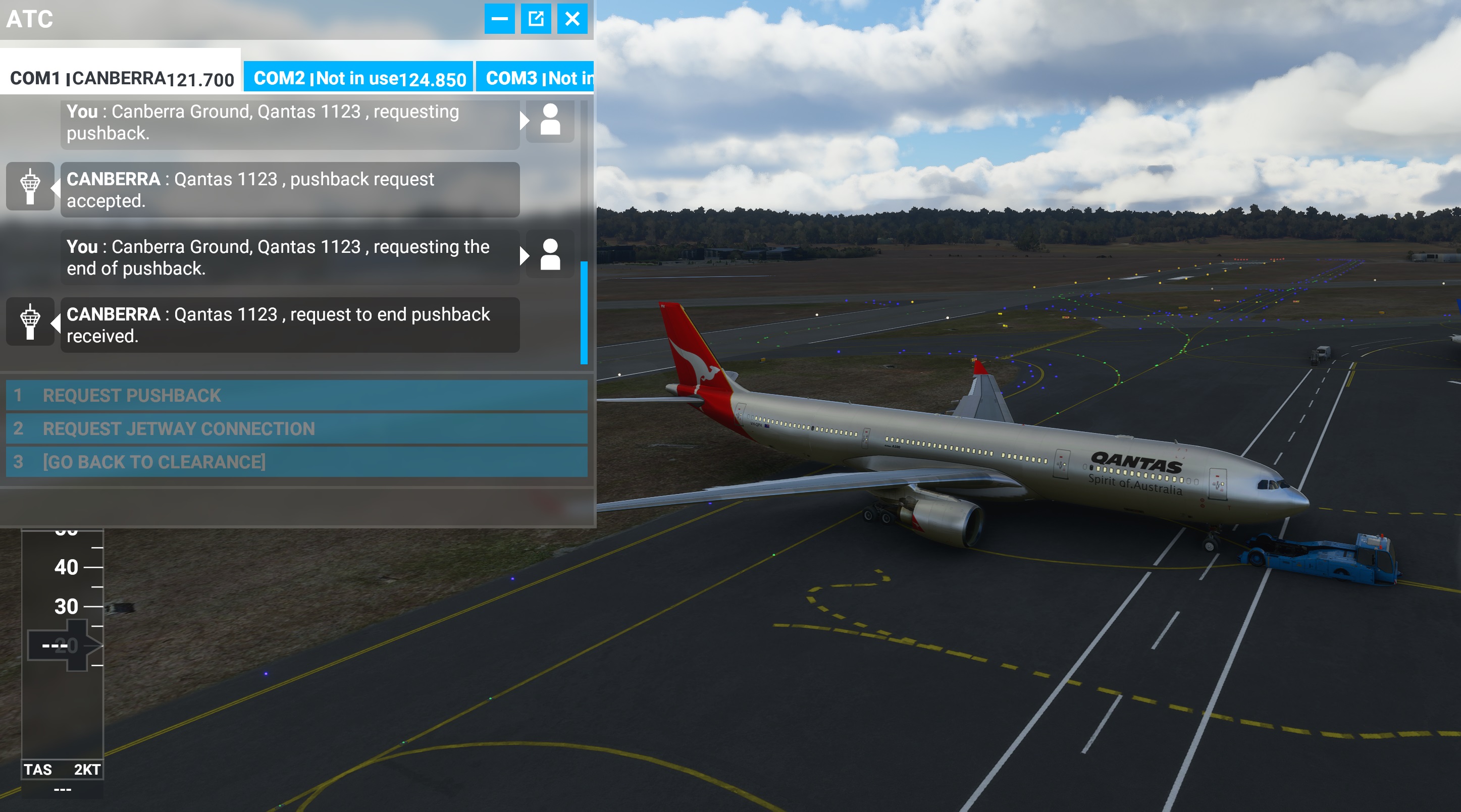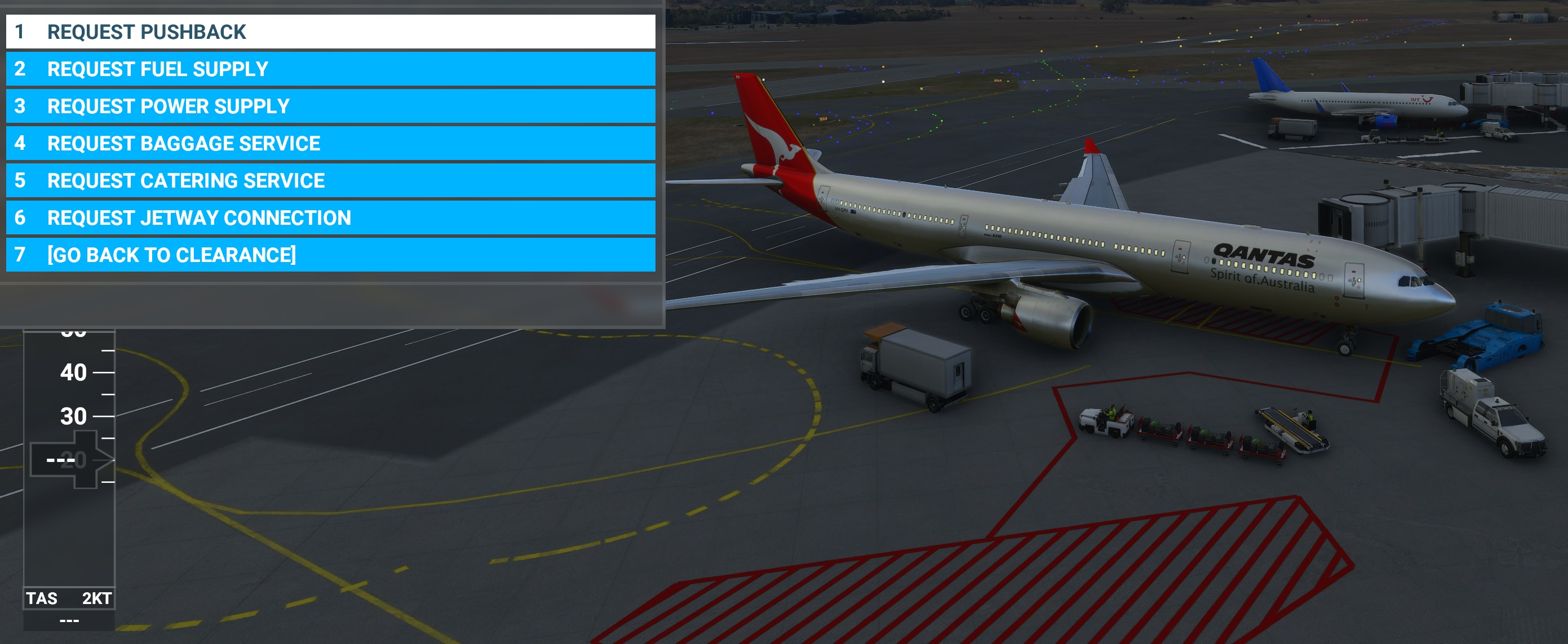 Ok eating my words. Turns out I was able to get pushback to work. No need to use reverse thrust to back out of the gate…