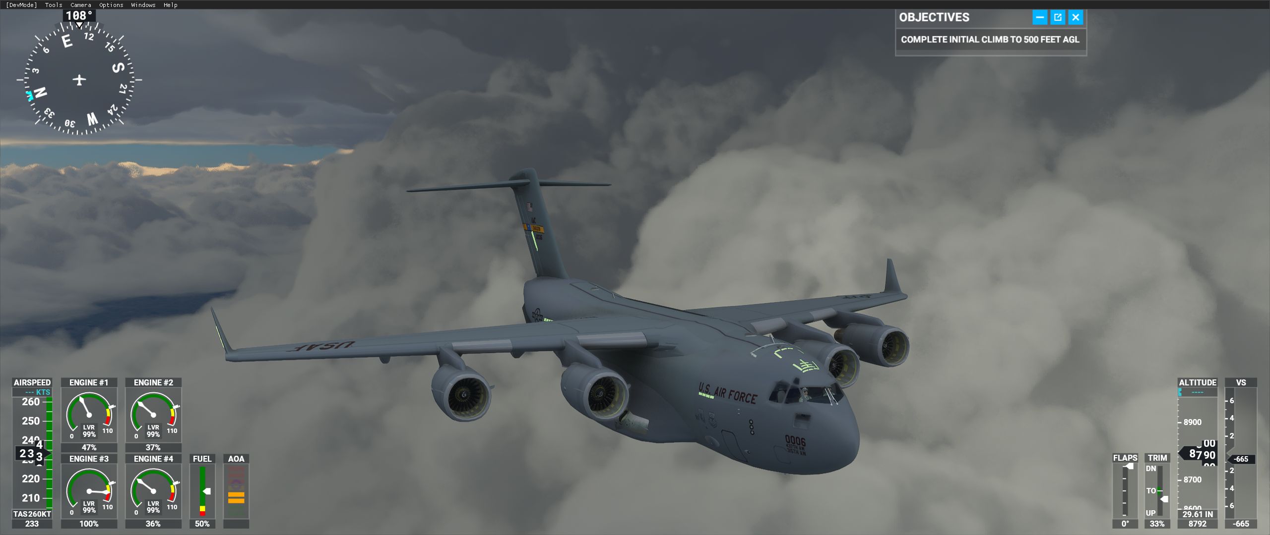 Keep in mind that the cockpit model is at a very different location coordinate wise, so it will likely sit behind your existing view point. You will have to adjust the viewpoint= coordinates in the cameras.cfg file to relocate it ‘inside’ of the cockpit.