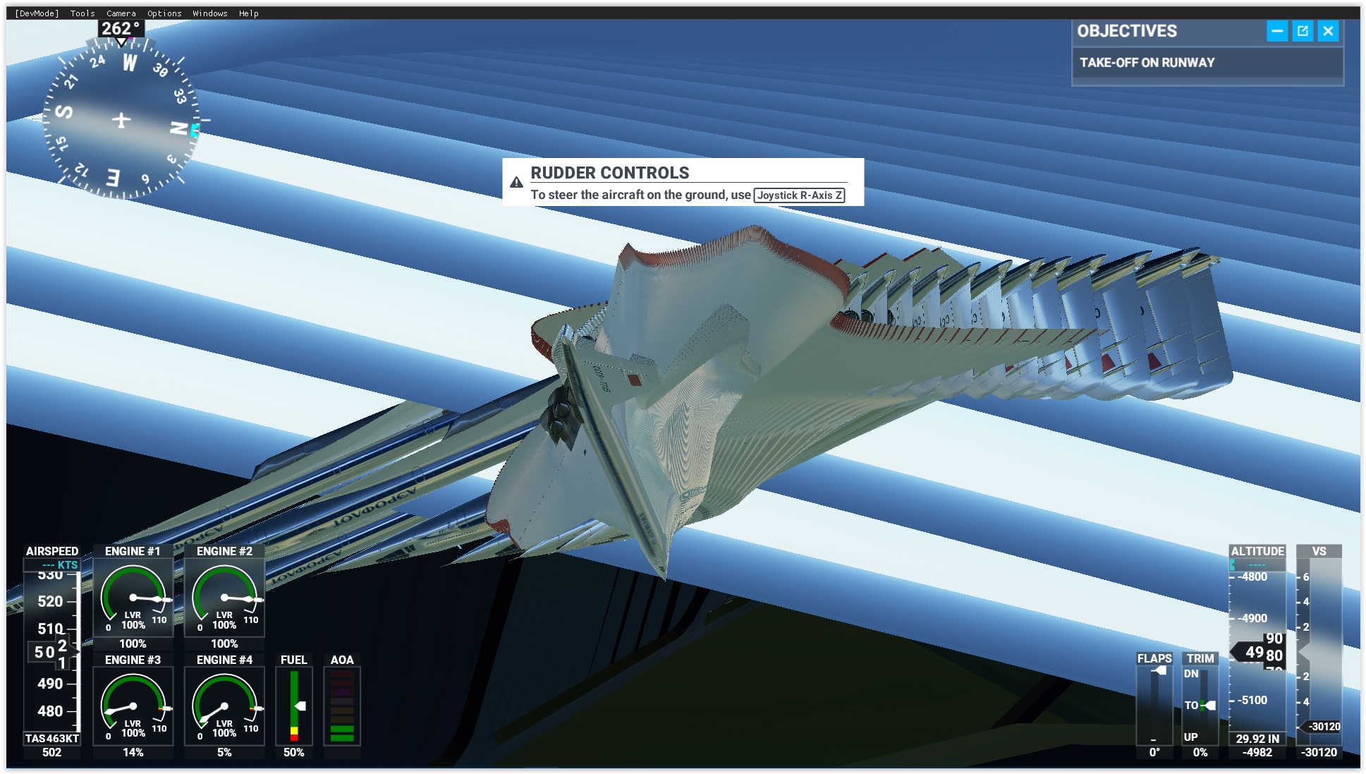Got the engines running but trying to figure out the elevator/lift. Ran on ground for about 3miles before it ran into something,
