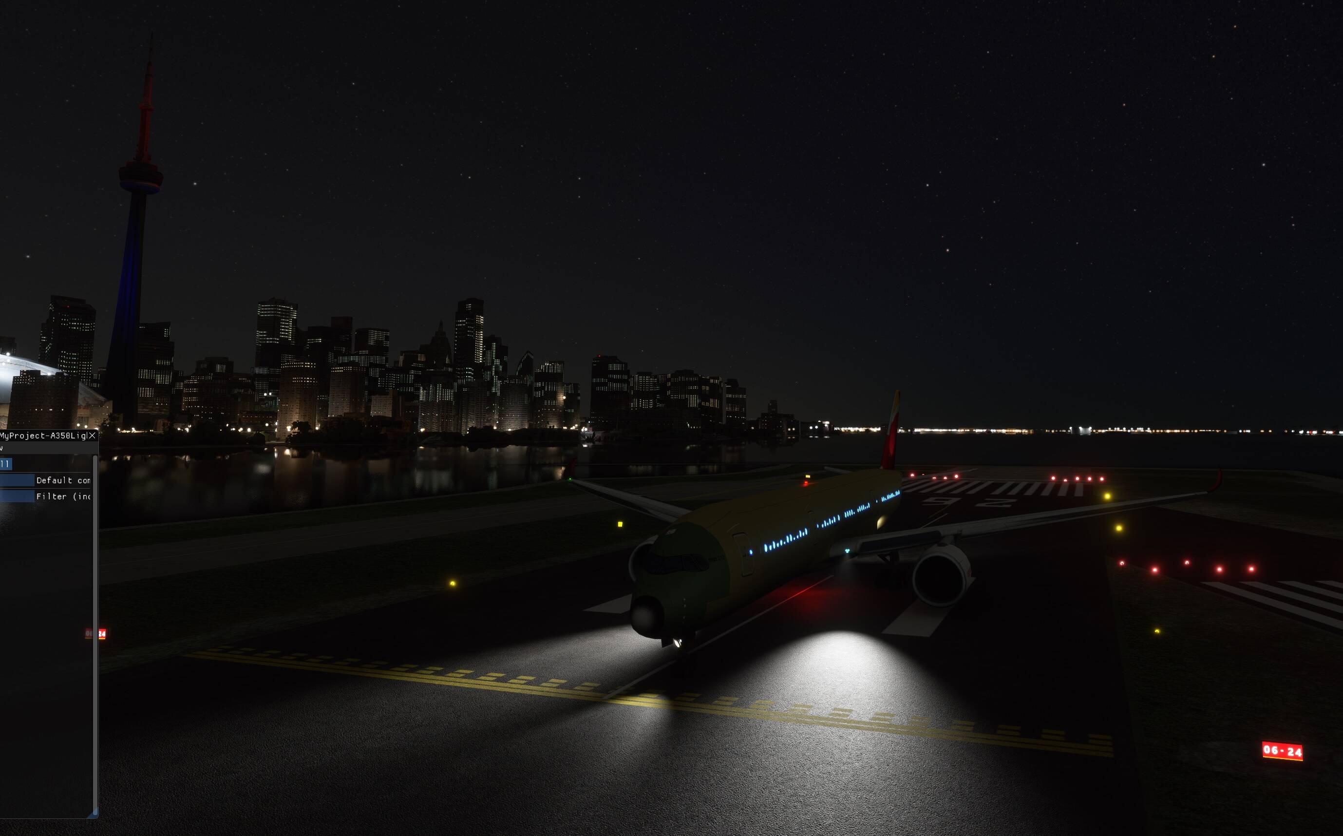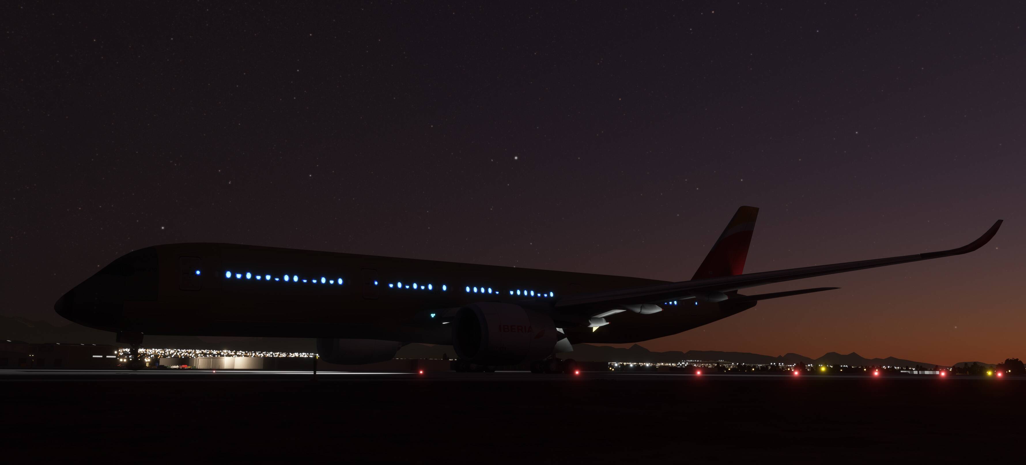 Night lighting 99% completed with this old and quite basic A350 model. Same issue with legacy model don’t think I can bake lighting into the model unless the model is built natively. So wing lights will float during flex. If I cannot find a way to light up the cockpit from the external view, I’m moving on to flight dynamics…