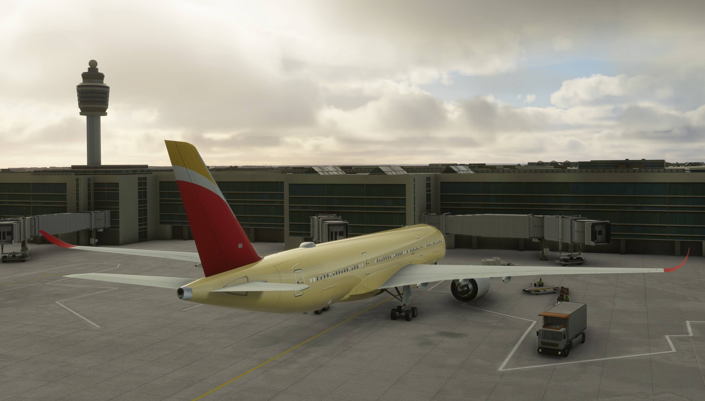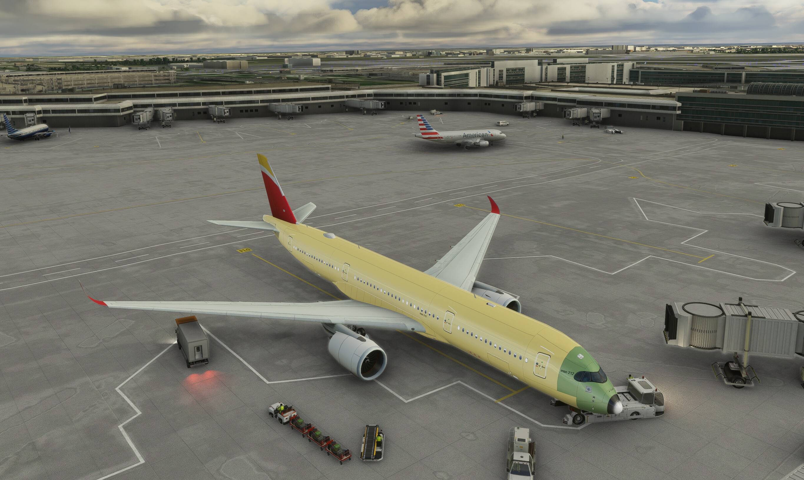 Here’s the A350 after applying the signature MSFS2020 reflective shine (clear coat) on the fuselage. I’ve used a lighter shine so the aircraft doesn’t appear perpetually brand new off the hangar…