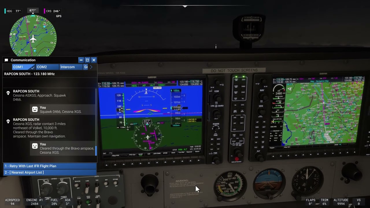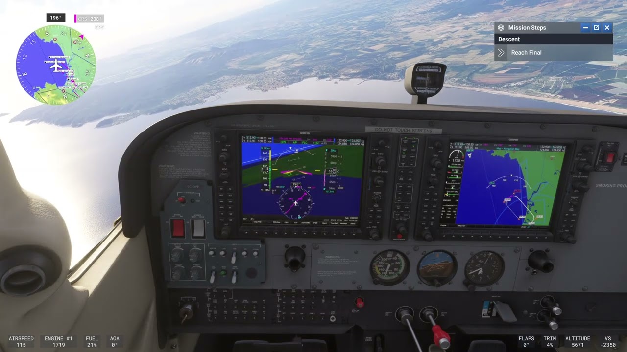 I also tried the Citation CJ4, which I think has Rockwell Collins Pro Line avionics. In that, sometimes the pilot’s PFD starts having an AHRS failure and the HSI display spins. It happens more frequently with the copilot’s PFD.