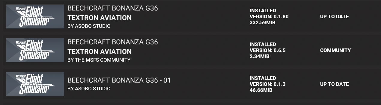 Yes, Raynen is on to something here. I’ve place the bonanza folder in my community folder. Now it looks like its installed? How do I tell? All I see in the sim is the Textron Bonanza. How can I tell if its the mod or not? This is what I see in Content Manager: