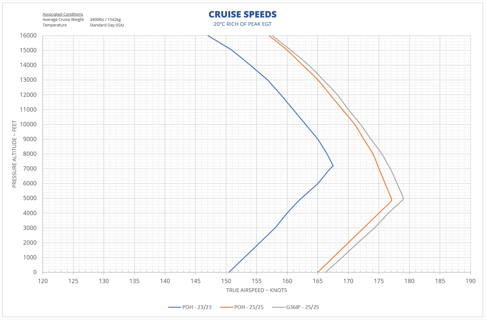 Think we have it pretty close to the numbers! At most we are 2knts out when at 25" / 2500rpm & 20°C rich of peak.