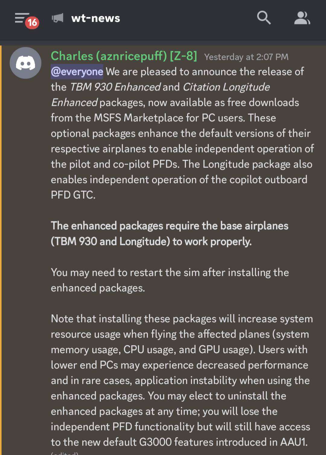 I found out on the Discord, which a very large portion of Xbox simmers do not frequent. As it wouldn’t be in the marketplace for them, either, and there hasn’t been a larger discussion on these enhanced packages, I stand by my characterization.