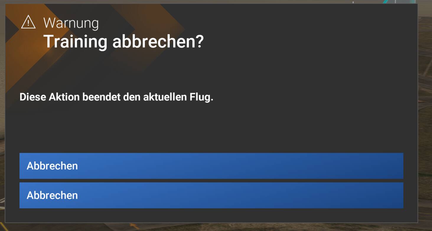 Description of the issue: When stopping a training the pop-up window appears with two “Abbrechen” (Cancel) buttons that have different meaning: