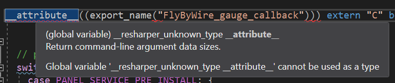 if you are compiling using the visual studio sdk you can remove that line entirely (although it isn’t incorrect, your IDE is just not trained to recognize clang attributes). A32NX’s build process invokes clang directly so we have to manually recreate some of the things the sdk does automatically.