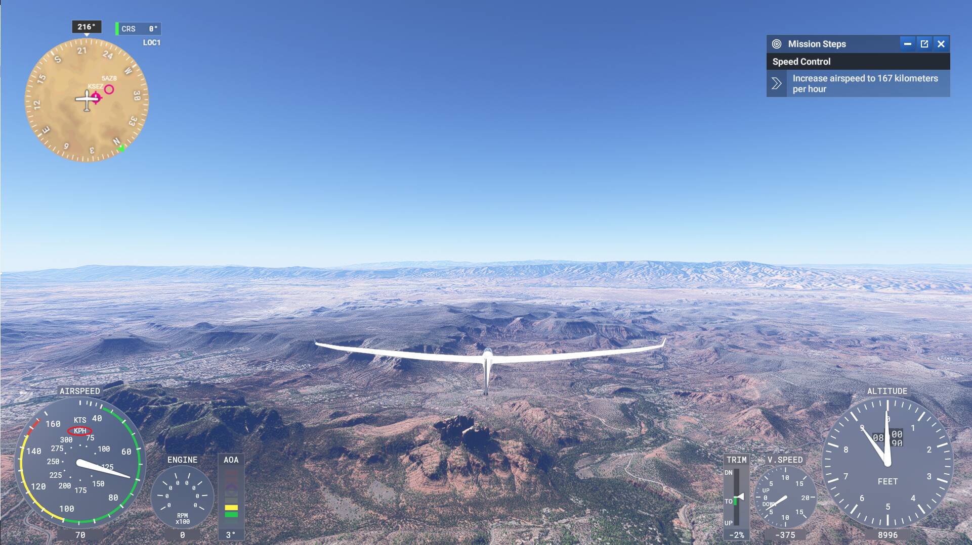 At first, not realizing that the instruction mentioned km/h, I tried pitching down until I reached 167 knots (the interface doesn’t even display knots, but I guess it’s clear that it’s not km/h). This caused me to overspeed and fail the mission. This is more user-error than an issue with the game itself, although I think this could be made much more clear to the user.