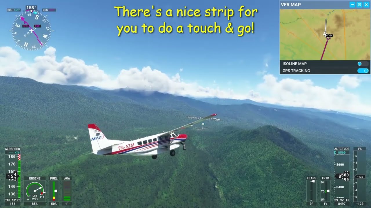 Some have asked for a flight plan. I originally did a rough one based on the plan shown in PNG Missionary Pilot’s video. I am not subscribed to his Patreon to get a detailed plan. The best I can do now is a pic. from my EFB. Basically follow the rivers to the 5th numbered waypoint, and then the valleys after that. Cheers.