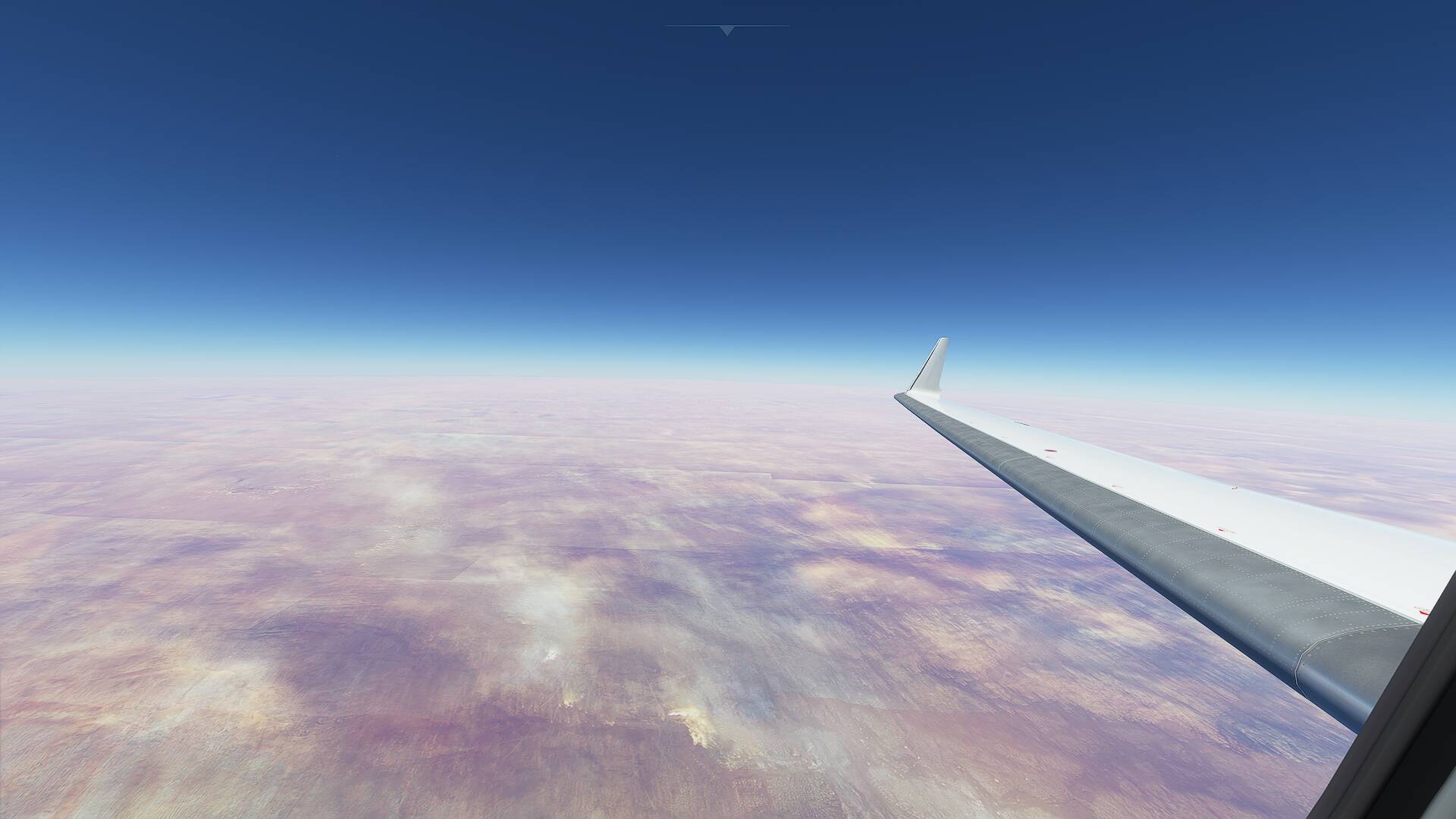 Does anyone perhaps have any suggestions of what settings I could try to tweak to solve what I can only really describe as grid-like textures? Screenshot taken over the Sahara desert (I’m referring to the fairly prominent straight lines between what must be squares or shapes of textures) - because the desert is fairly uniform and consistently plain, perhaps it just stands out a bit more than usual? Most noticeable is the small 90 degree offset just forward of the wing and below the wingtip.