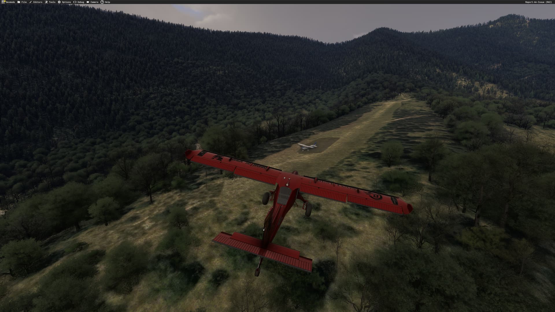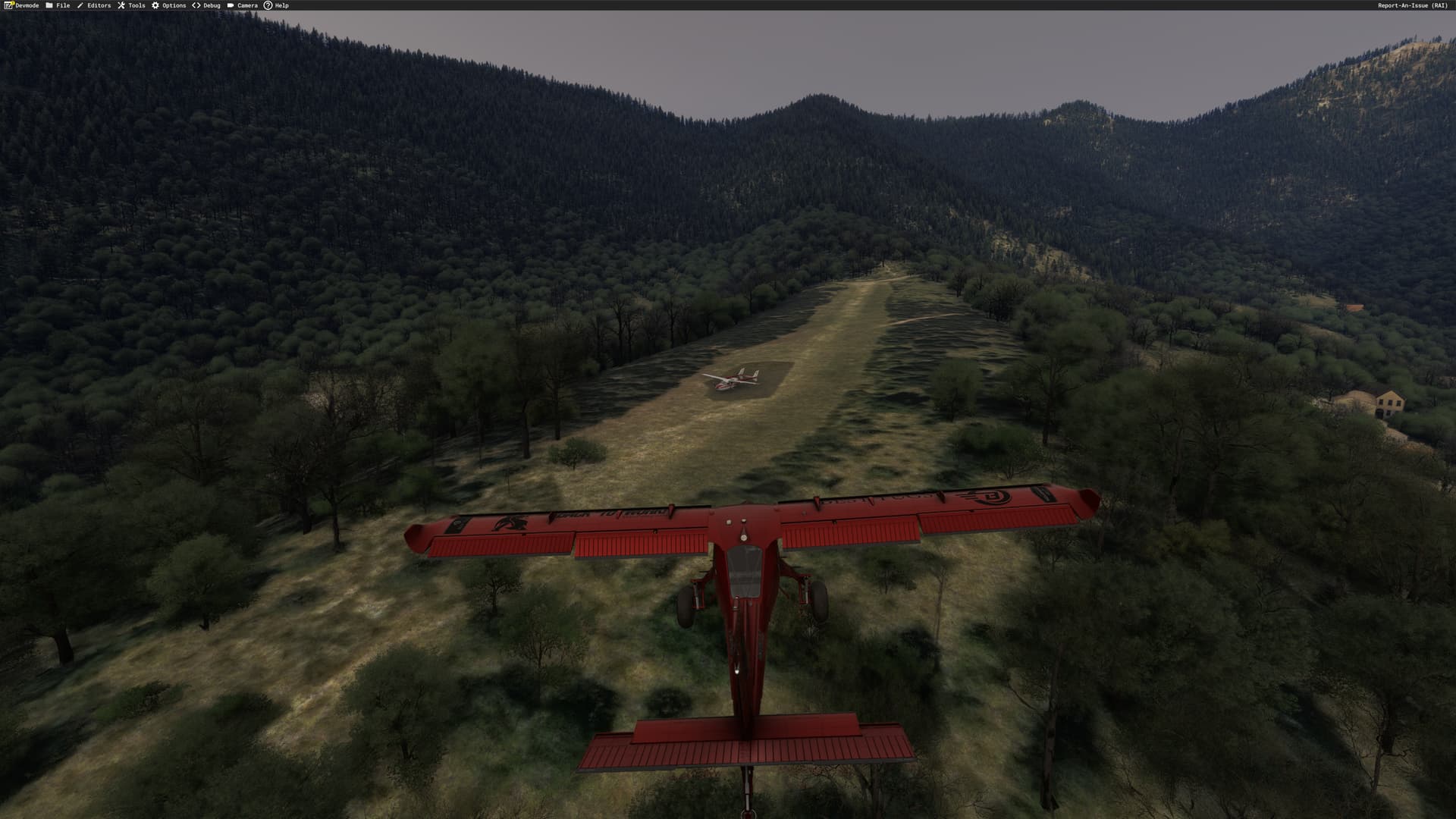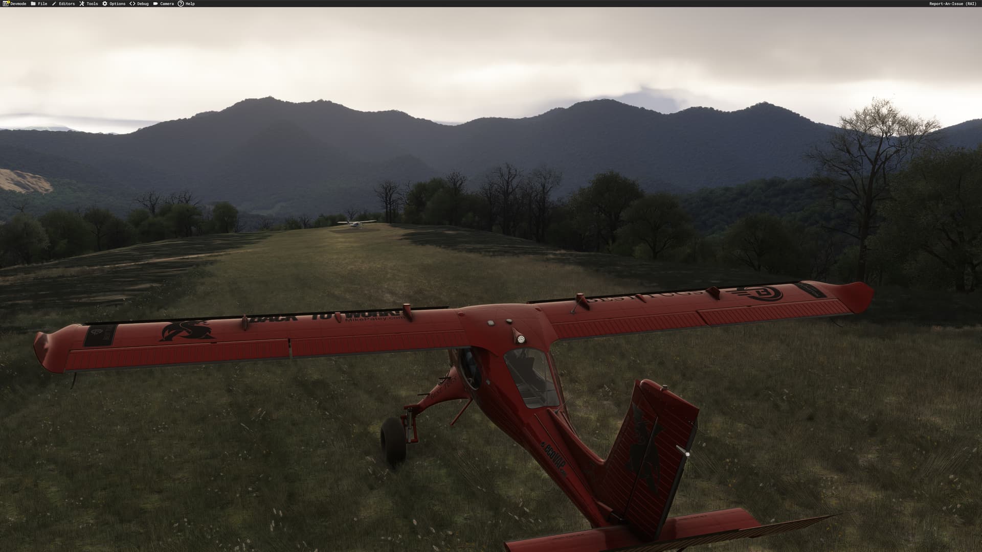 - After landing, turn around, and observe the aircraft now parked at the airport.