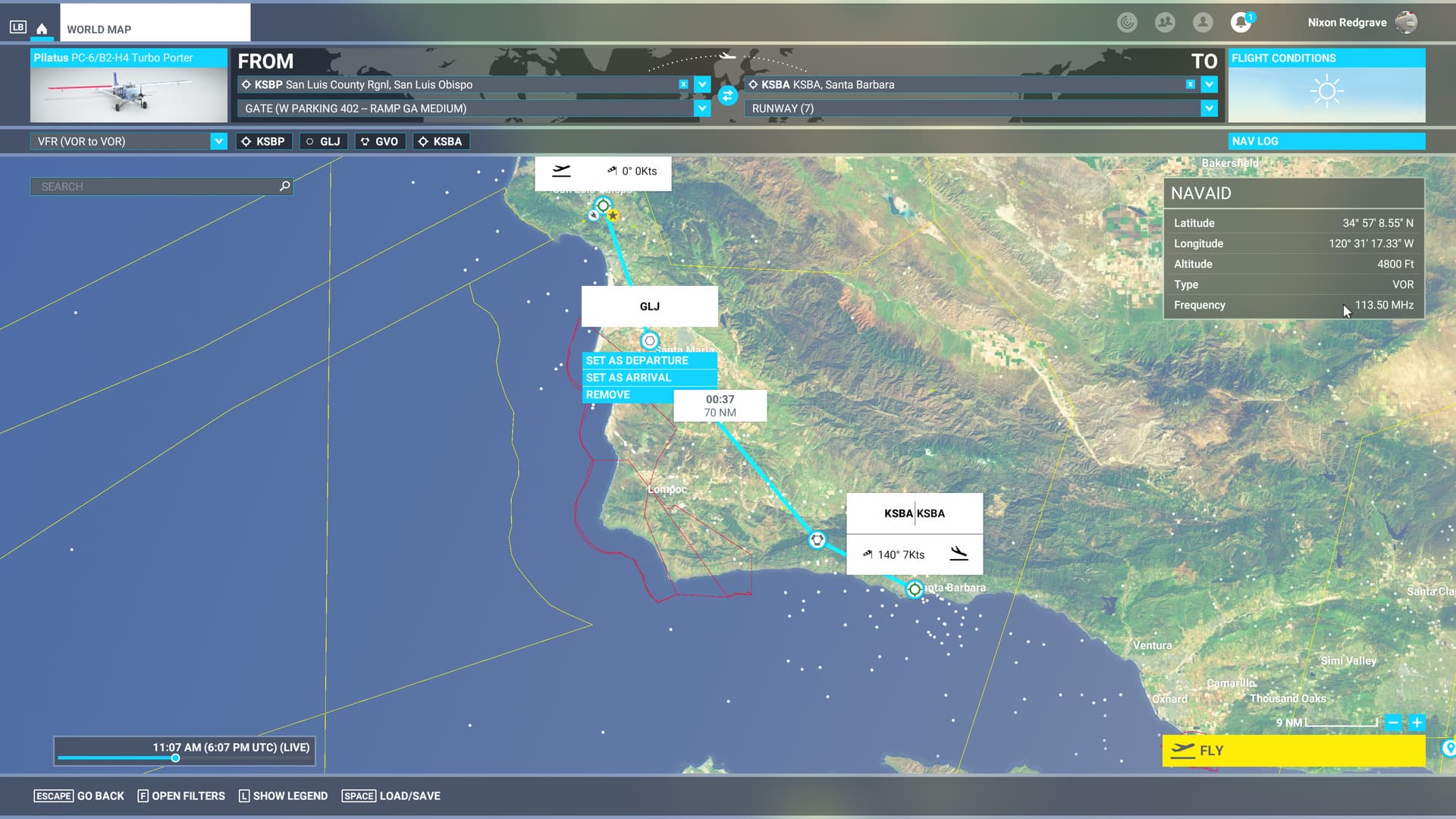 Go to World Map, change filters to display NAVAIDS (make this setting persist, already!!), search for GLJ in California, click its icon, note frequency displayed, compare frequency to real-world data.