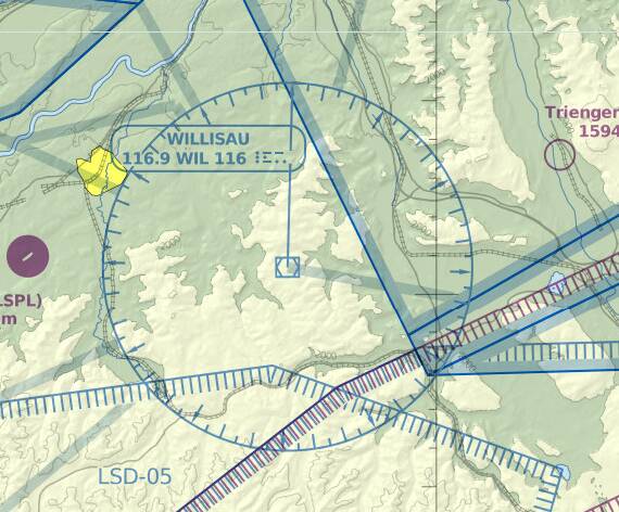 You see the name of the VOR (WILLISAU in this case), the frequency (116.9) and its MORSE code. (those dots and lines).