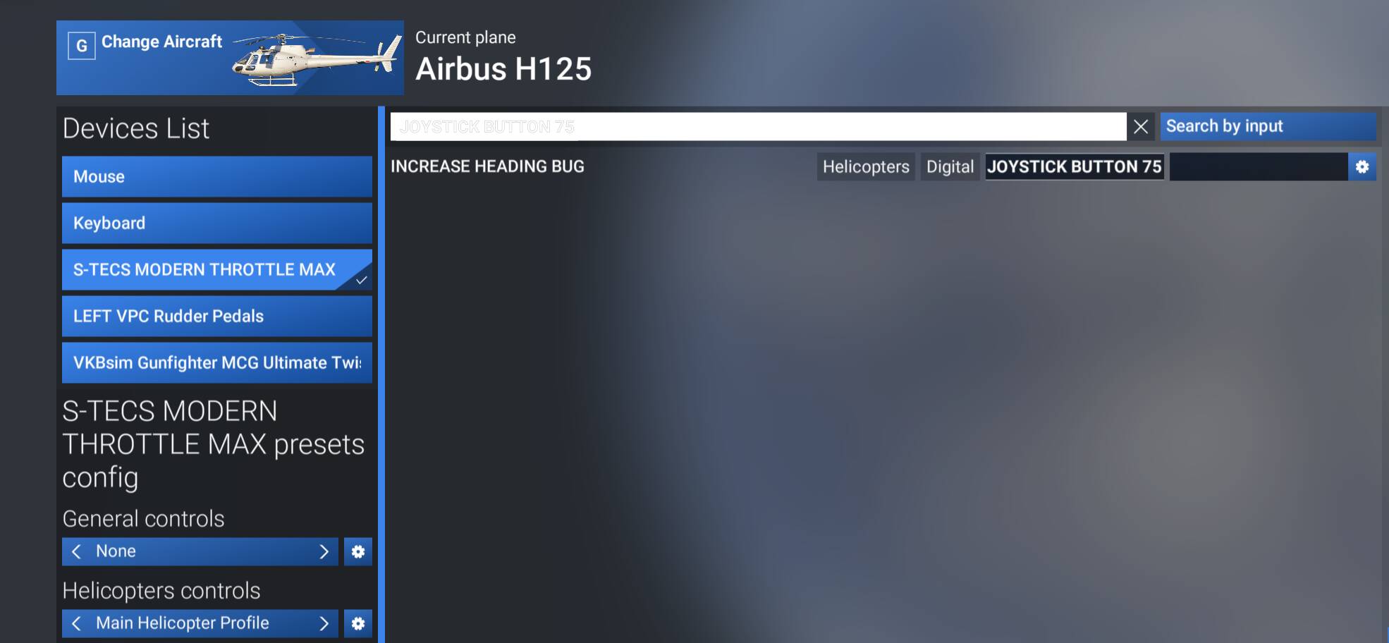 Description of the issue: The H125 heading bug does not respond to bound controls. It does work to click on the bug dial. The bound controls also work with other helicopters.