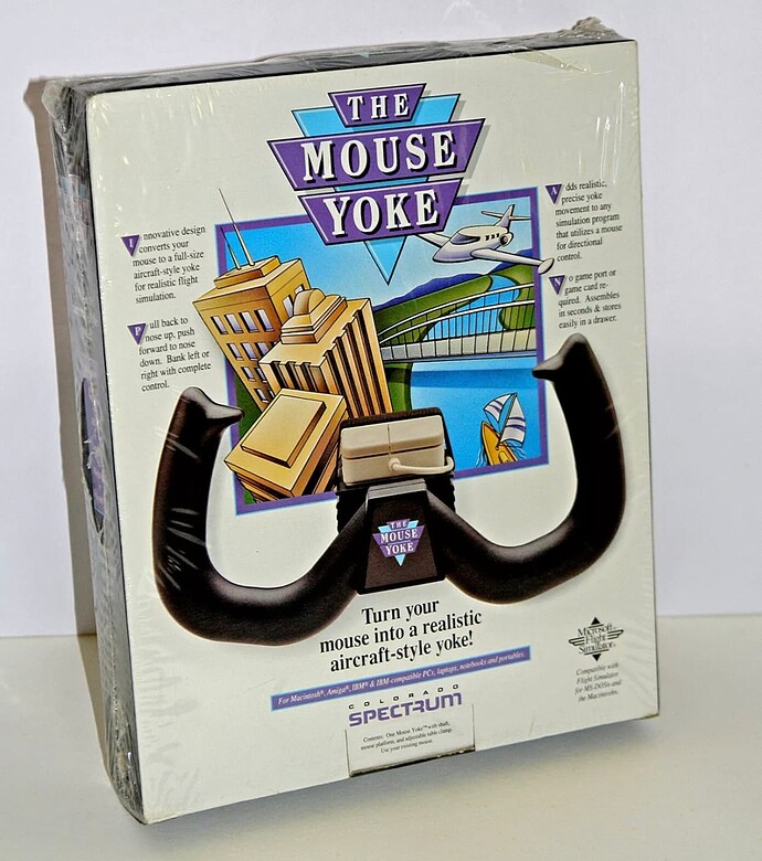 I thought I would share this interesting yoke from the 80s when Flight Simulator on home PCs was just starting. Interesting that it uses the mouse as the input but I guess it worked.