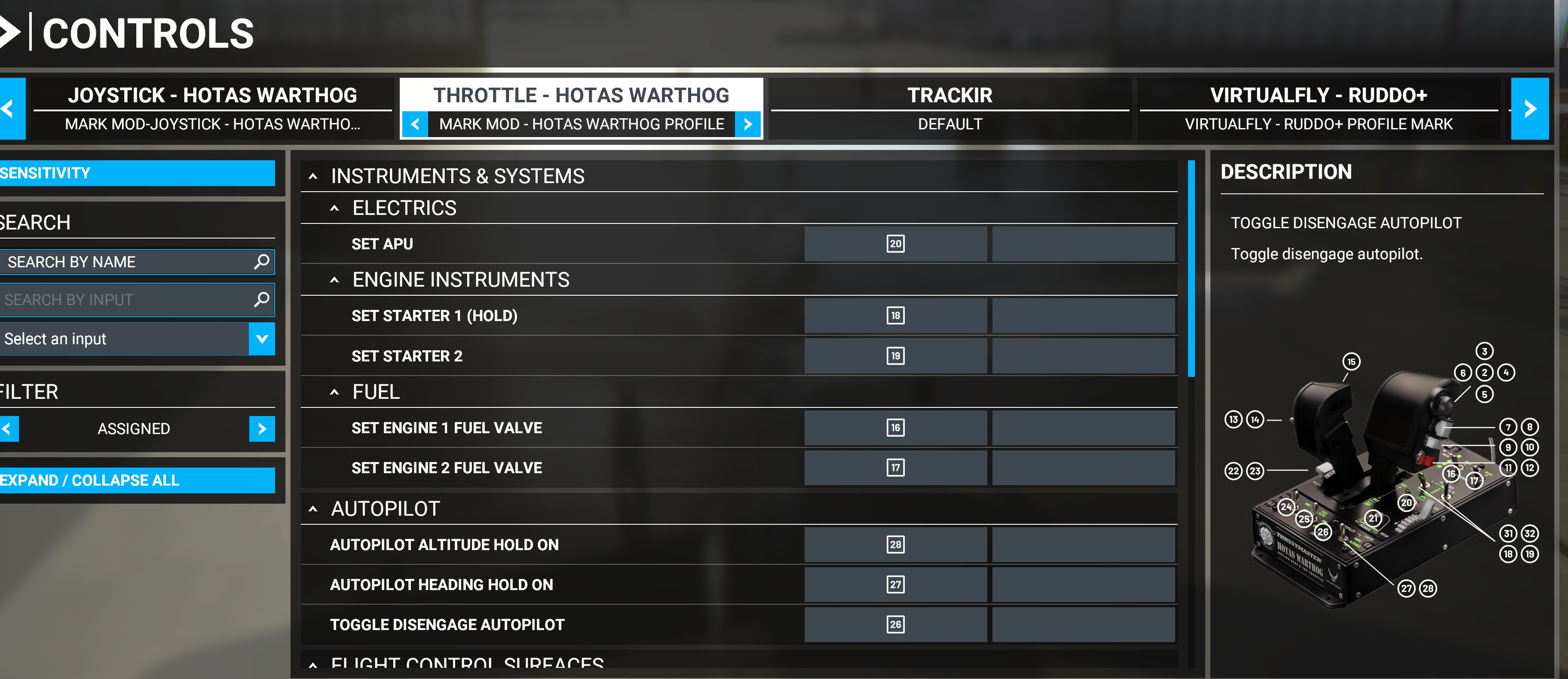 I’m actually glad to hear that the Throttle isn’t routinely fully populated in MSFS, so that my situation isn’t an outlier. It is interesting that the Hotas Warthog flight stick is pretty much fully bound in MSFS. I only changed one or two to customize it a bit. Otherwise it was pretty much ok for me.