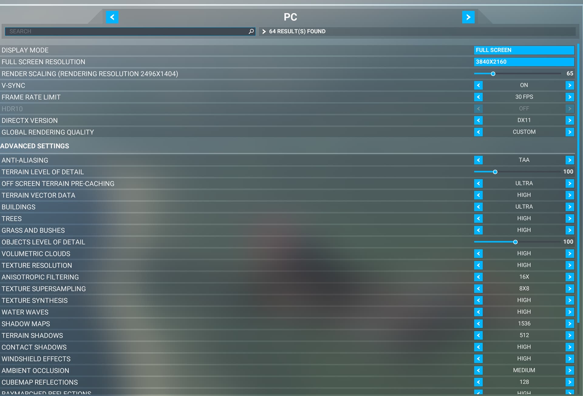 You said you were using the drone camera. I was flying a C172. My graphics settings are a combination of High/Ultra somewhere in between the 2 posters who provided screenshots above.