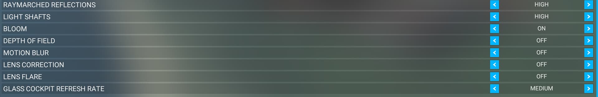 Shots from exterior view, drone and my graphics settings. I’ve asked the CMs to take a look at this thread for consideration, regardless of whether @N316TS and I can repro it or not.