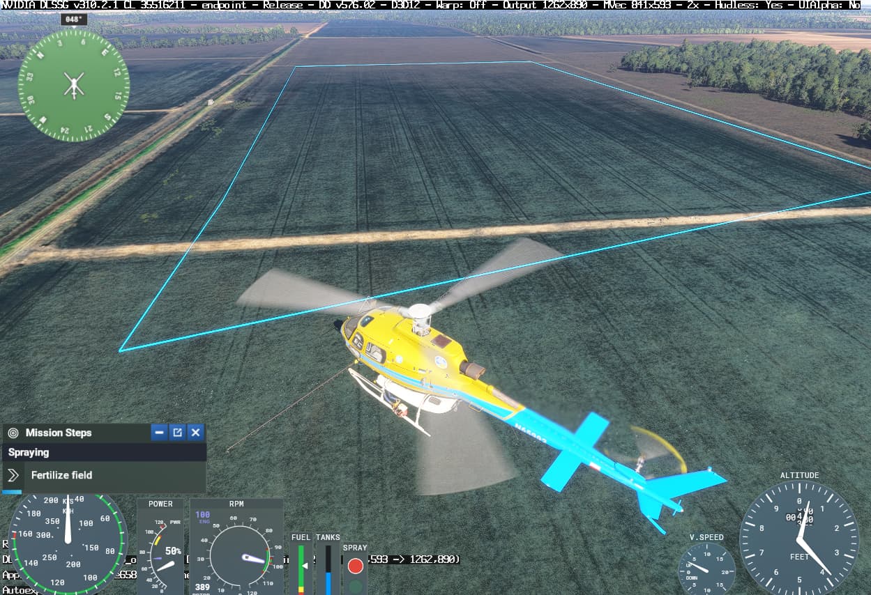 - Most fields selected by the algorithm are just way too small to be realistically/economically be sprayed by helicopter. This may be due to the inability to refill once the spray tank runs out, see Helicopter agricultural mission ends when out of spray instead of refilling