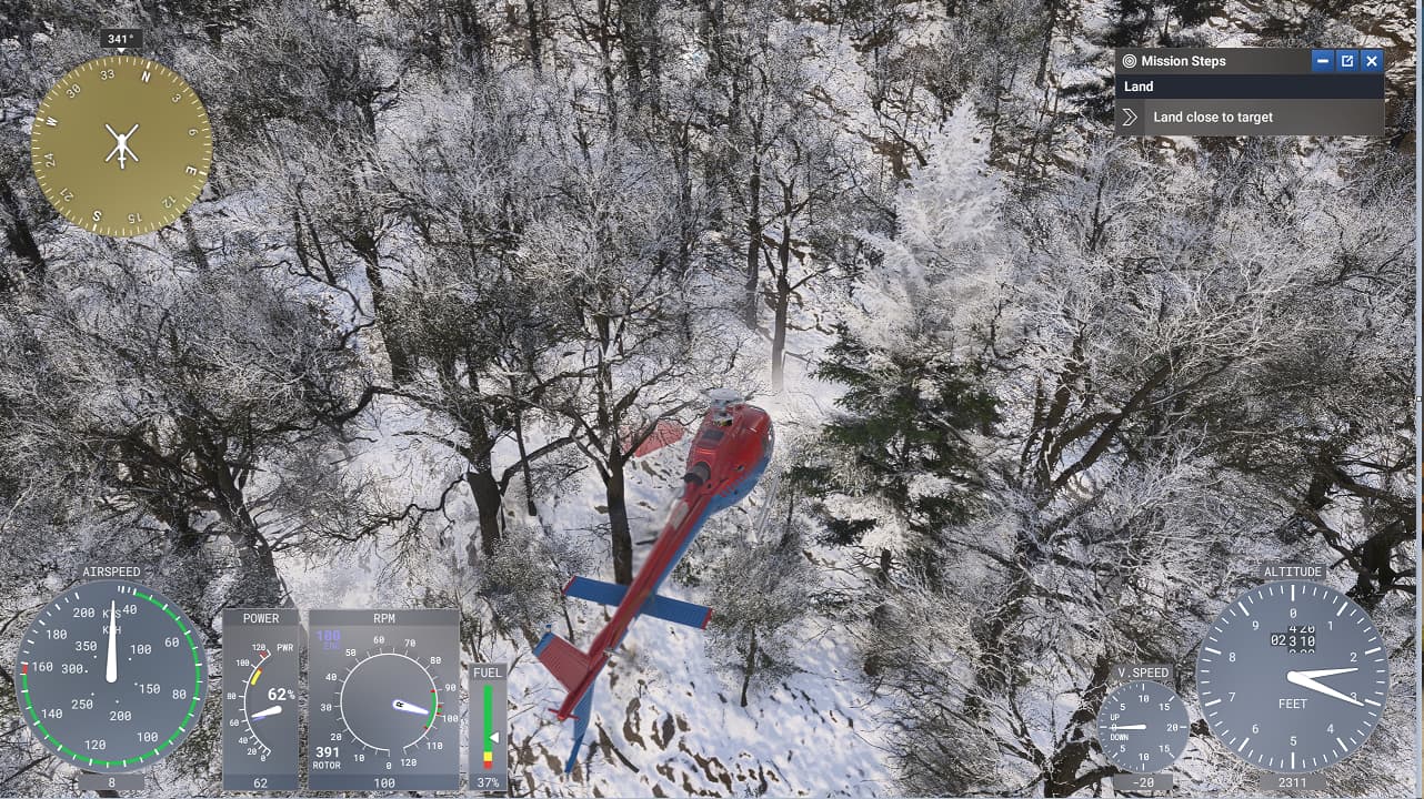 One tip for cargo. You have a vertical reference window on the floor to the right of the pilot seat. That’s for sling loading. But it’s extremely difficult to use it. It’s certainly not easy in a real helicopter either.