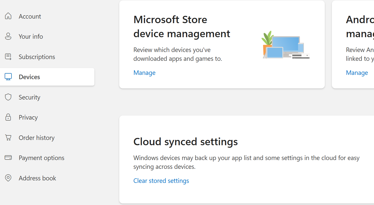 Now I would go to the Microsoft.com website on your computer, sign in, click on your name in the upper right, and go to Manage my Account > Devices