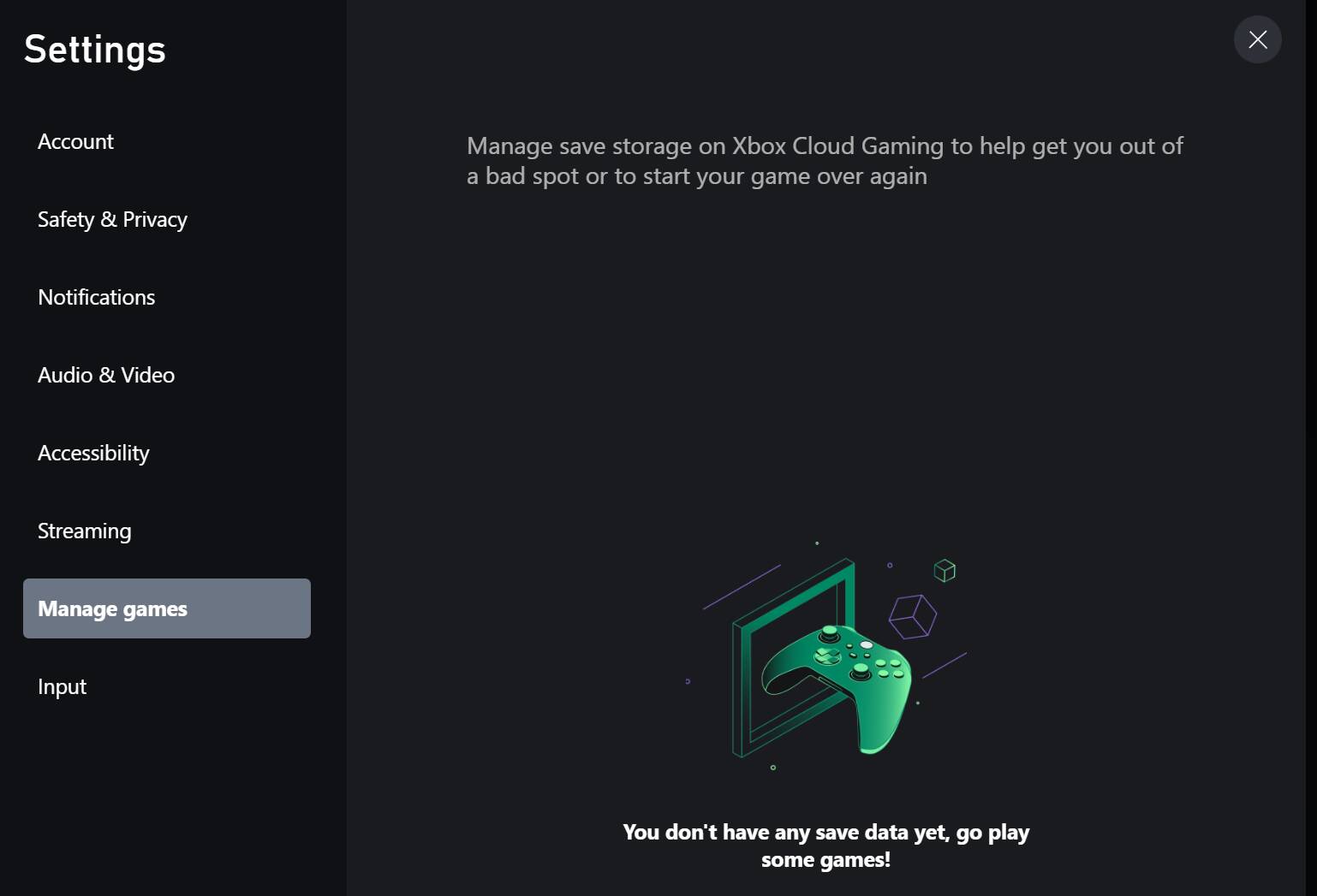 This takes you to the Xbox Cloud Gaming page, click on Settings
