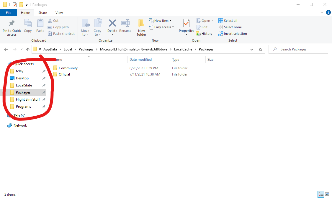 My string is C:\Users\User\AppData\Local\Packages\MicrosoftFlightSimulator-(nbrs/letters)\LocalCache\Packages (but don’t include ‘Community’ at the end of this string)