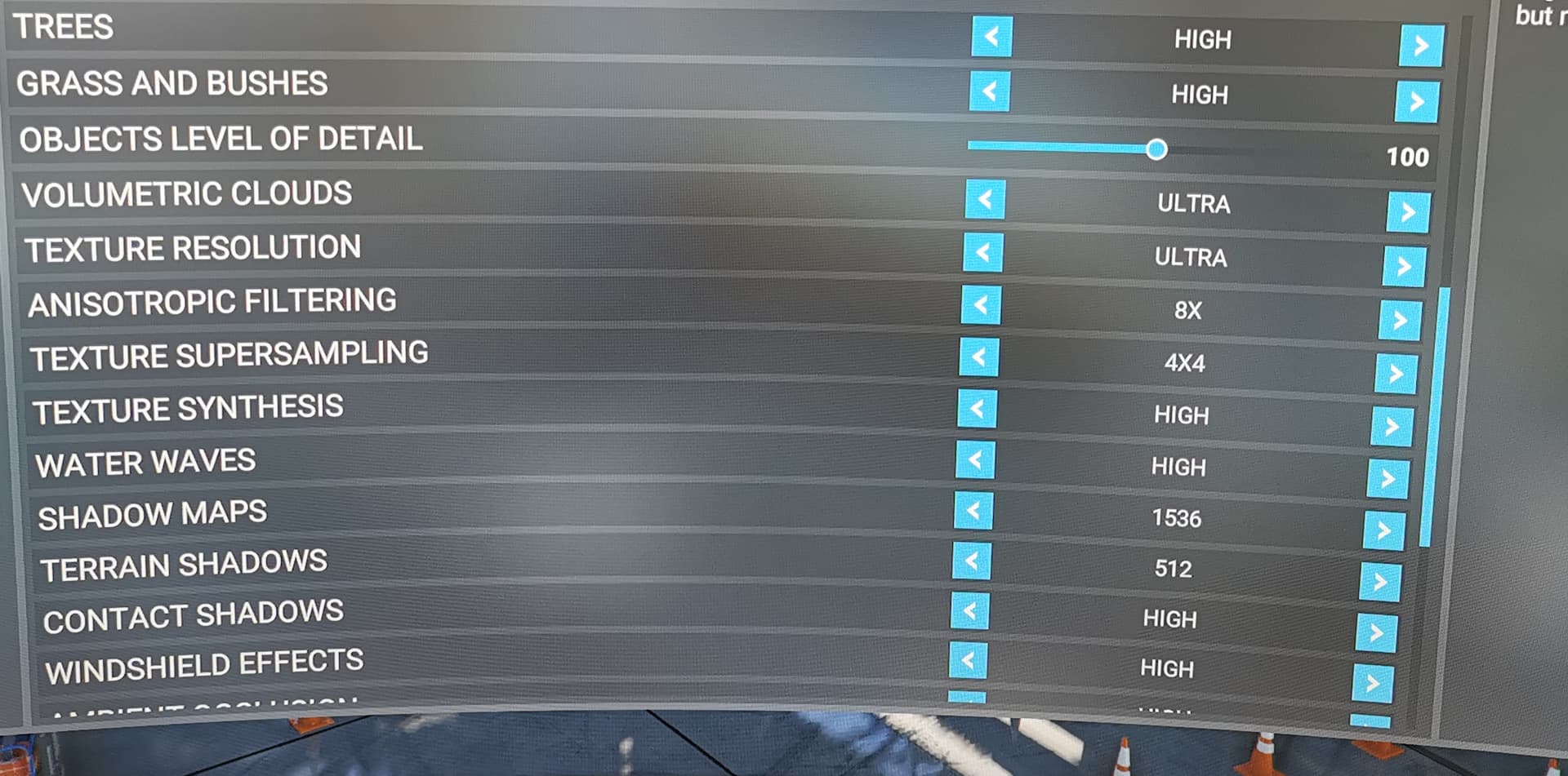 For a while I was able to run MSFS on ultra settings (render 100) at 1440p with 40-50fps,maybe 60 from time to time but recently I’ve had troubles getting over 40 FPS without clouds, out in the woods, down to 15-25 at international airports.