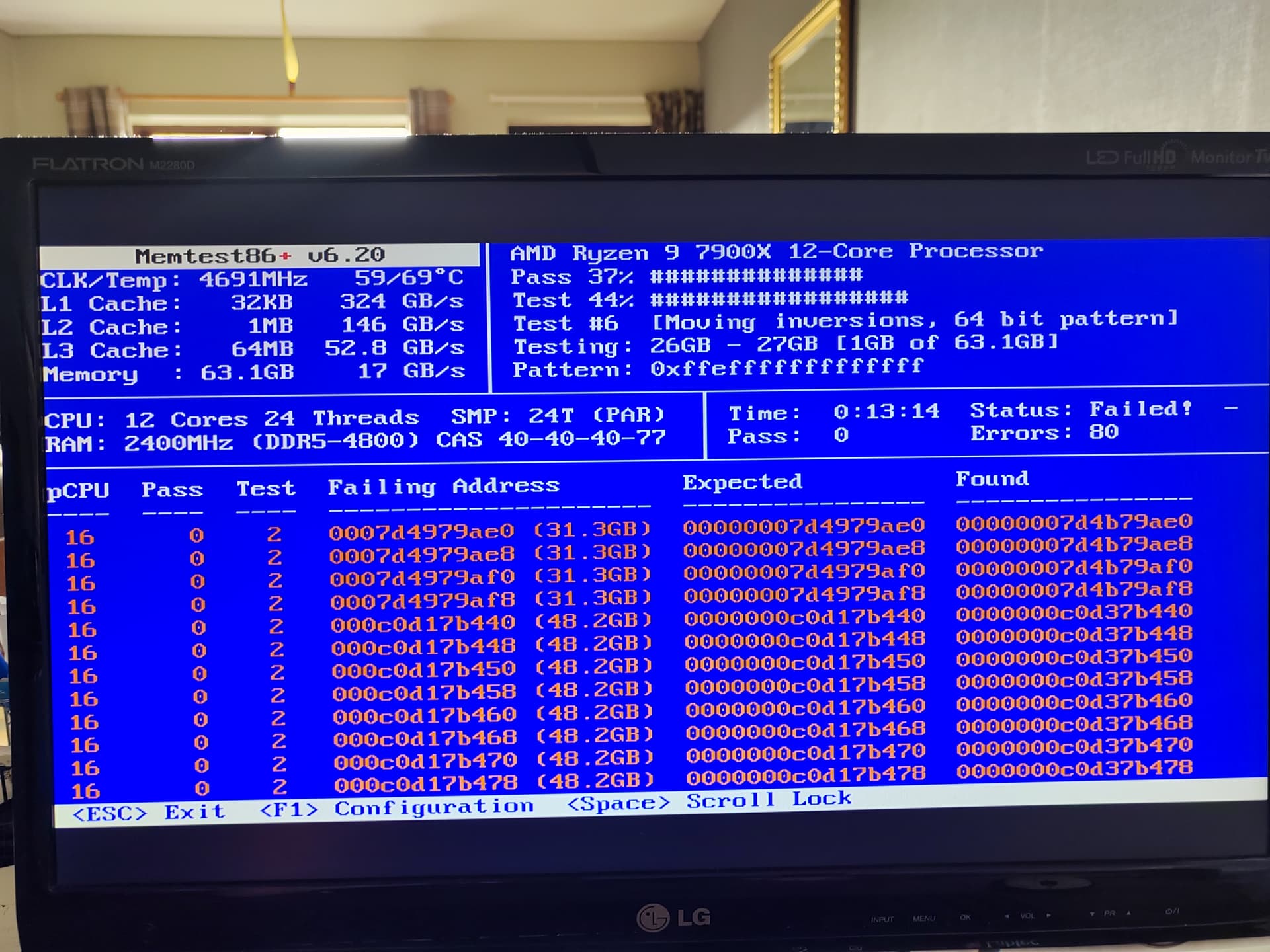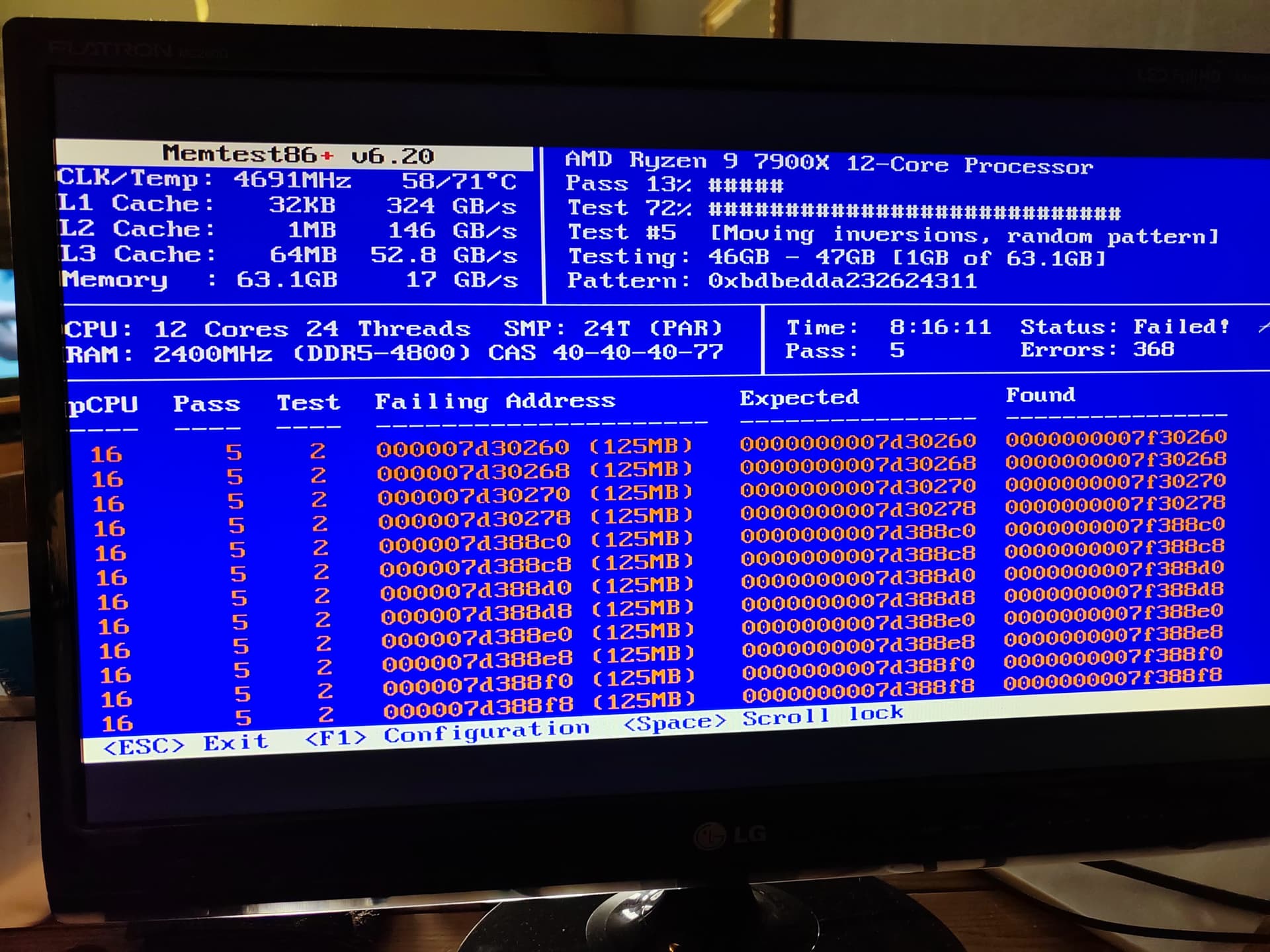 I wouldnāt necessarily worry about the errors all being when the test is running on the same core, I think it would happen regardless of which core you were using. If you had fails running on one core but passes on another, that could point to a CPU issue, and running memory tests always involves the CPU caches and in theory there could be a fault there, but I personally doubt that. That should get picked up in binning at the fab. Though @BegottenPoet228 mentioned the ASUS overvolting incident which has caused damage to CPUs and you do have an ASUS boardā¦