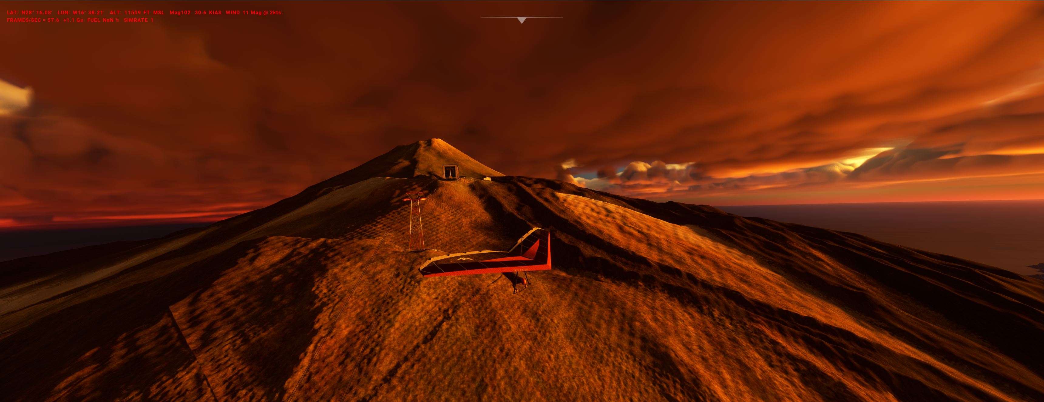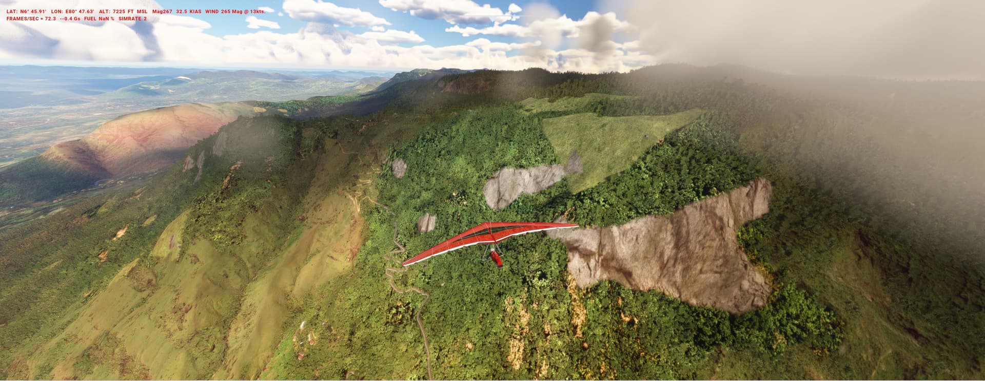 As the representation of sim thermals is still hotly debated, lets use a strong southern wind for a ridge-lift, distance-flight along a little-known but dramatic tropical escarpment.