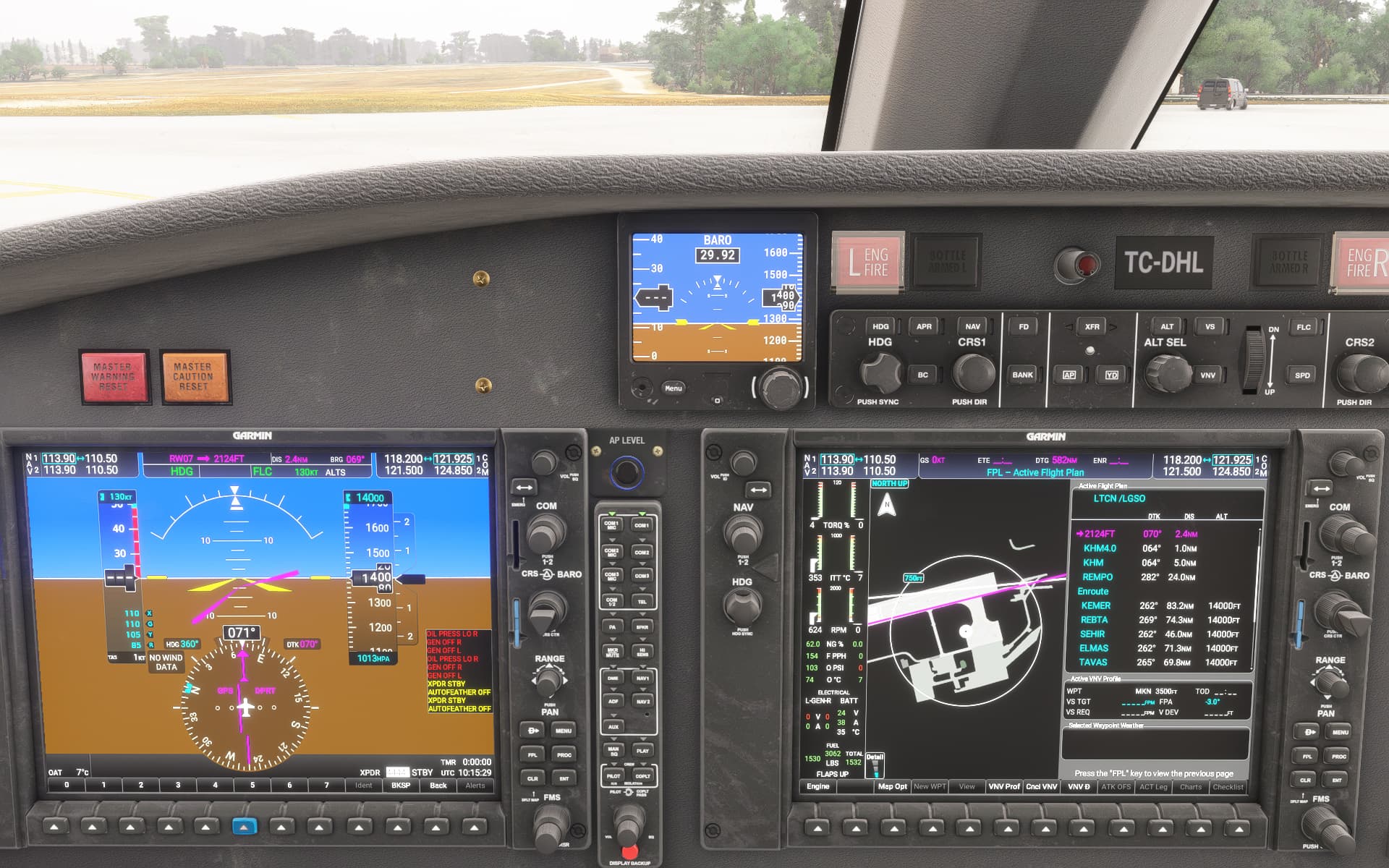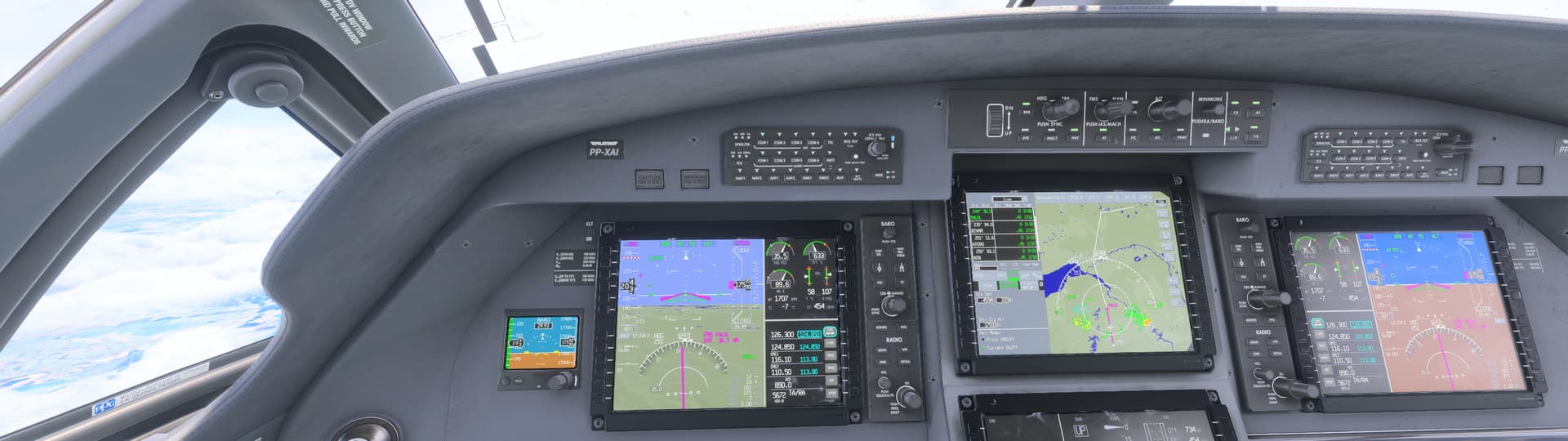 The increase exposure is, without a doubt, a significant improvement when it comes to the readability of labels and buttons in the cockpit, but now creates a significant amount of bloom and overexposure on screens. Look at the screenshot below, the transponder code on the PFD and the taxiway / runway materials and markings on the MFD are barely readable anymore.
