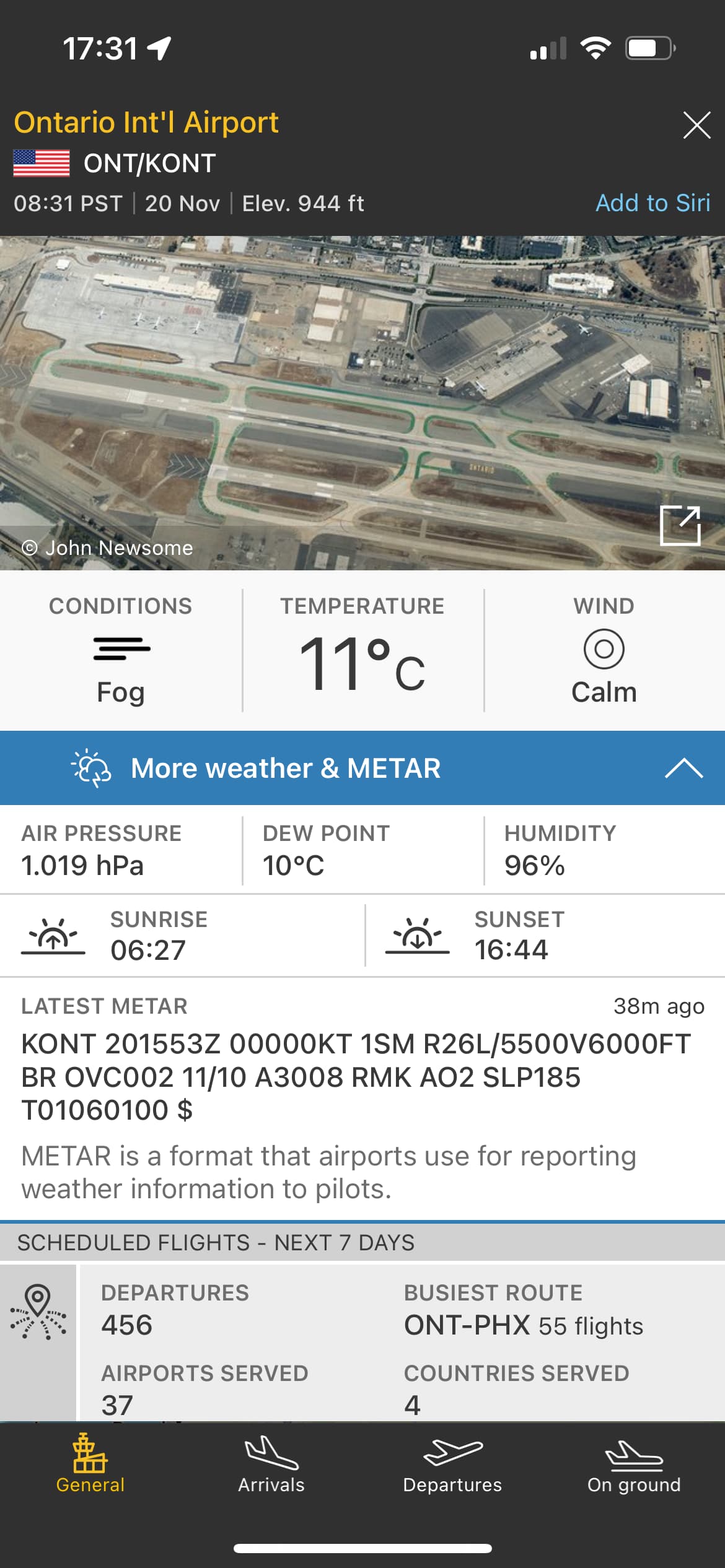 Yes, I know the visibility at KONT is extremely reduced per actual reports.