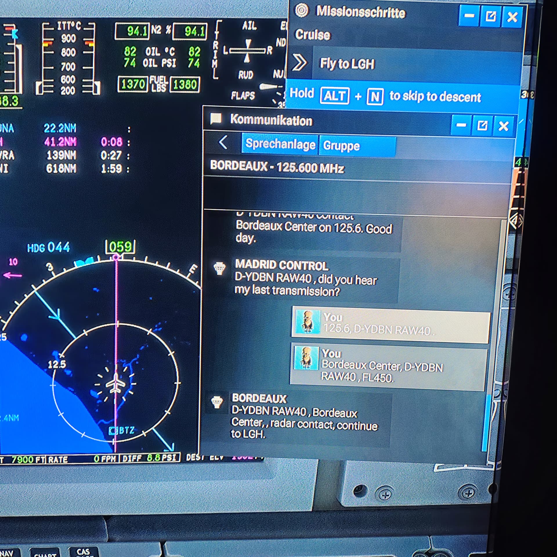 • communication UI panel is missing COM-channels, but transmissions from ATC are without interaction buttons, quick-answer button (