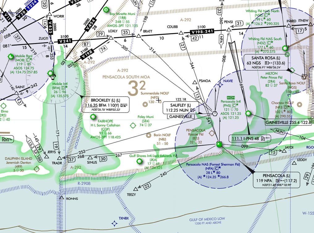 Breaking out a VFR sectional chart, though websites like SkyVector and other tools will suffice for our purposes here, you also want to check for airspace you want to avoid, like certain special-use airspace or areas you shouldn’t fly VFR through, like Class Bravo airspace, though some you can avoid vertically rather than laterally. There are some publications on the Chief of Naval Air Training (CNATRA) website that are basically cleared for public release that are newer versions of what I had to use in flight school, and I recommend at least skimming through a few of them; this one on visual navigation has a bunch of info on reading charts, airspace, visual separation, etc.: P-767.20200409.pdf (navy.mil)
