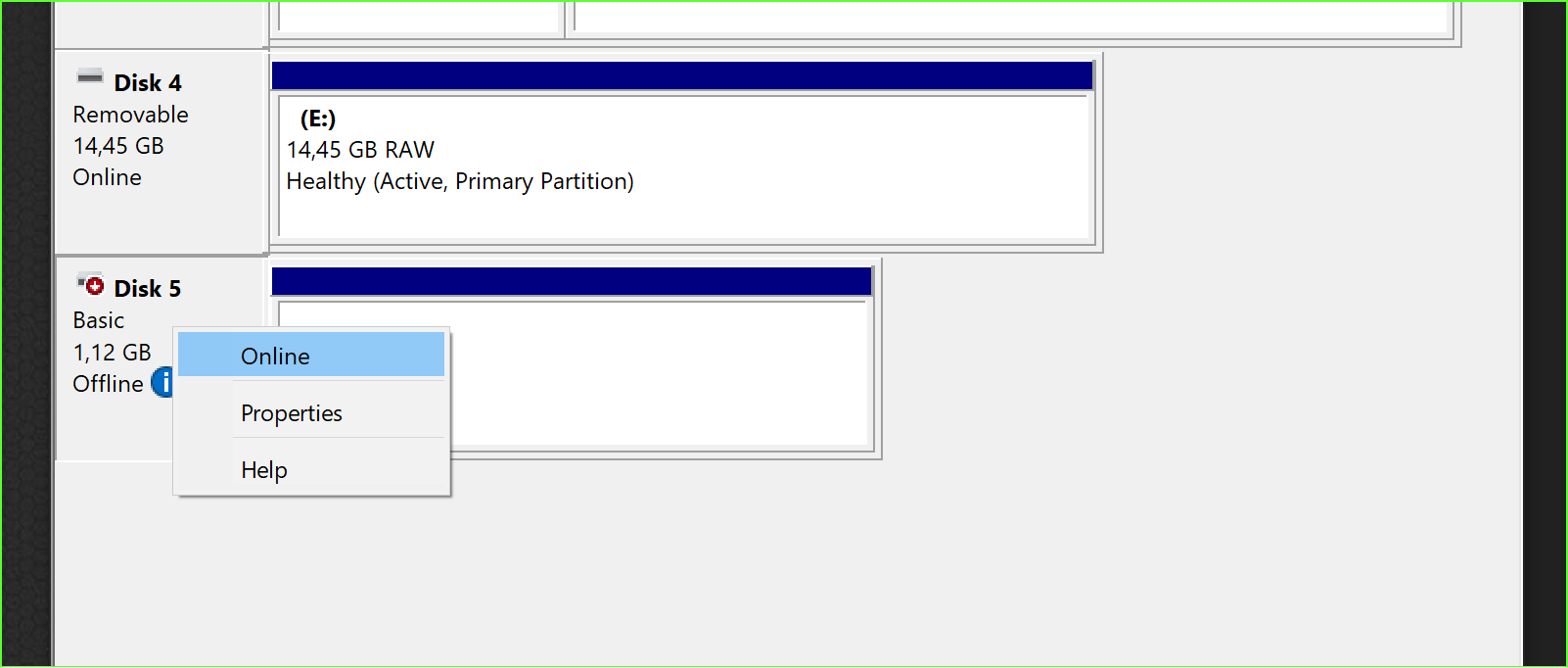 running MSFS as administrator does not change the behavior (I am admin user), I need to set the drive showing up to Online manually.