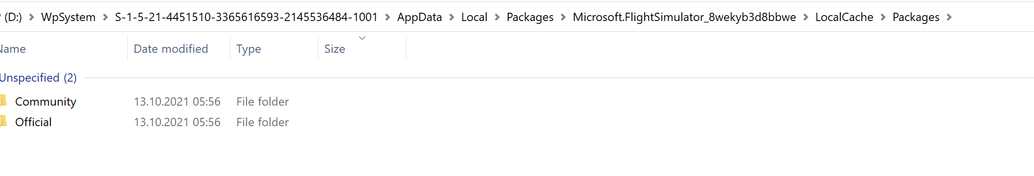 C:\Users\YourUsername\AppData\Local\Packages\Microsoft.FlightSimulator_8wekyb3d8bbwe\LocalCache\Packages\Official