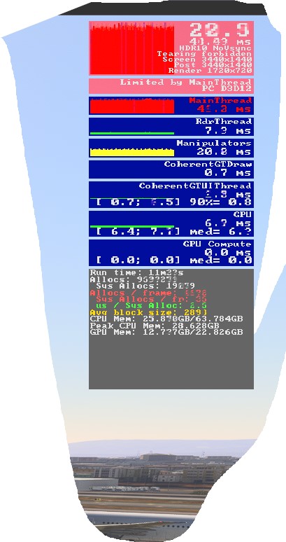 Wonder how I am getting 2x more fps than OP with my 13900k when flying Fenix with GSX paxes, //42. A320 Immersion and ULTRA settings. On 3440 x 1440 with HDR.