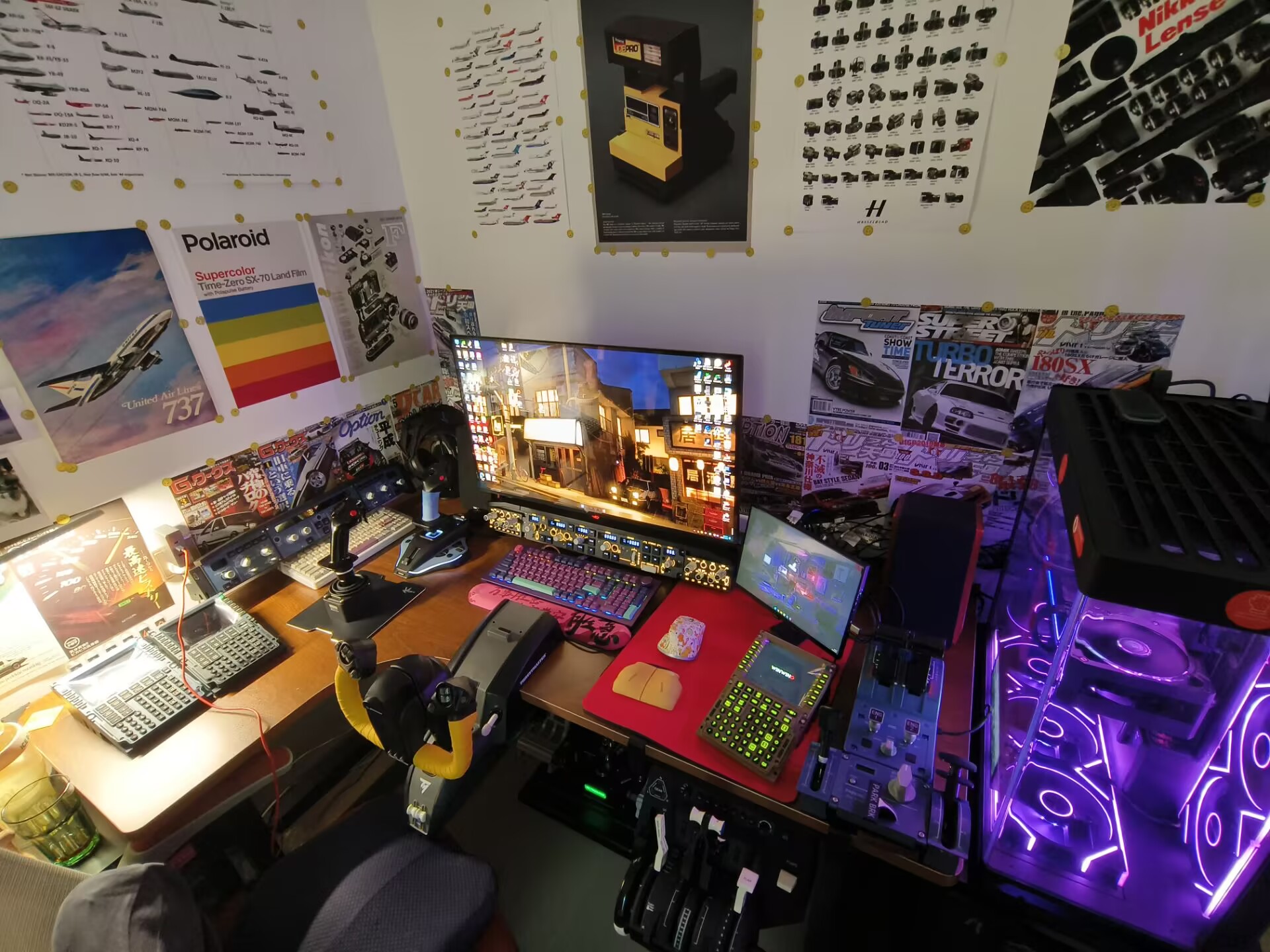 When MSFS2020 was announced, I was so overwhelmed by the beauty of the trailer, that I immediately sold my Apple iMac 2018 model to earn some funding for a new PC. This PC I configured myself on the website of the vendor, but I let it be assembled by them. Within three weeks, I swapped the case for a Fractal, because I didn’t like the one I chose first. The configuration already has changed quite a bit. It is more apt to say that the Fractal is the only thing that’s still the same. The second mobo, CPU, cooler, RAM, SSD, GPU, and power supply I also chose part by part, but this time I assembled the whole system myself, including my first coolant paste adventure. It’s a 13700K CPU, with32Gb 6000Mhz RAM and some 3 Tb SSD in total. All run by a 1000W power supply. Just a few months ago I sold my RTX4080 for 800, and bought a RTX5090 for 899. That was a great upgrade for little money! The Odyssey G9 49” changed to a G9 57”. I still find it a brilliant system that gives me a lot of enjoyment. The fact that I built it myself certainly adds a lot of fun. At the moment I am building a new version of a home cockpit, starting with a Bendix old school radio stack. This involves PCB soldering, and a lot of troubleshooting. Not for the faint of heart, I am learning at the moment. But in the end certainly very rewarding.