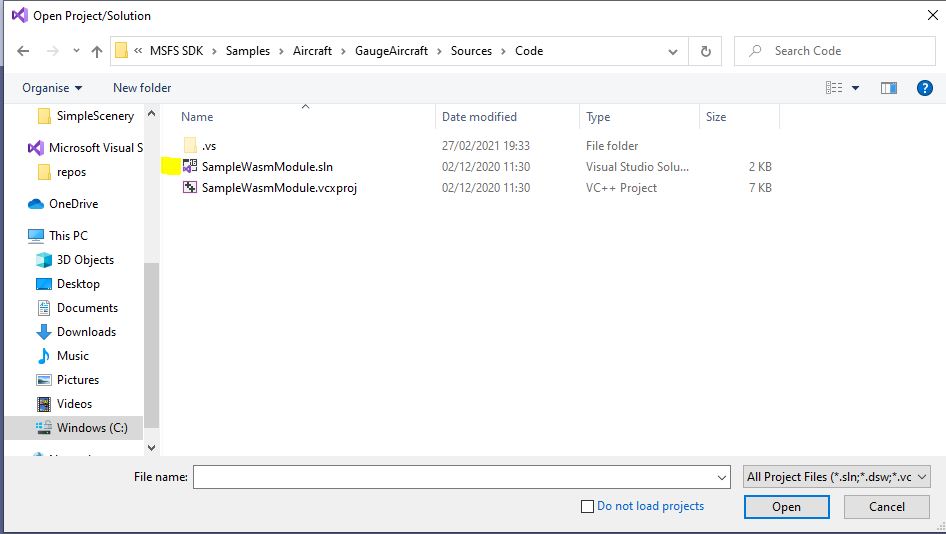 C:\MSFS SDK\Samples\Aircraft\GaugeAircraft\Sources\Code\SampleWasmModule.sln