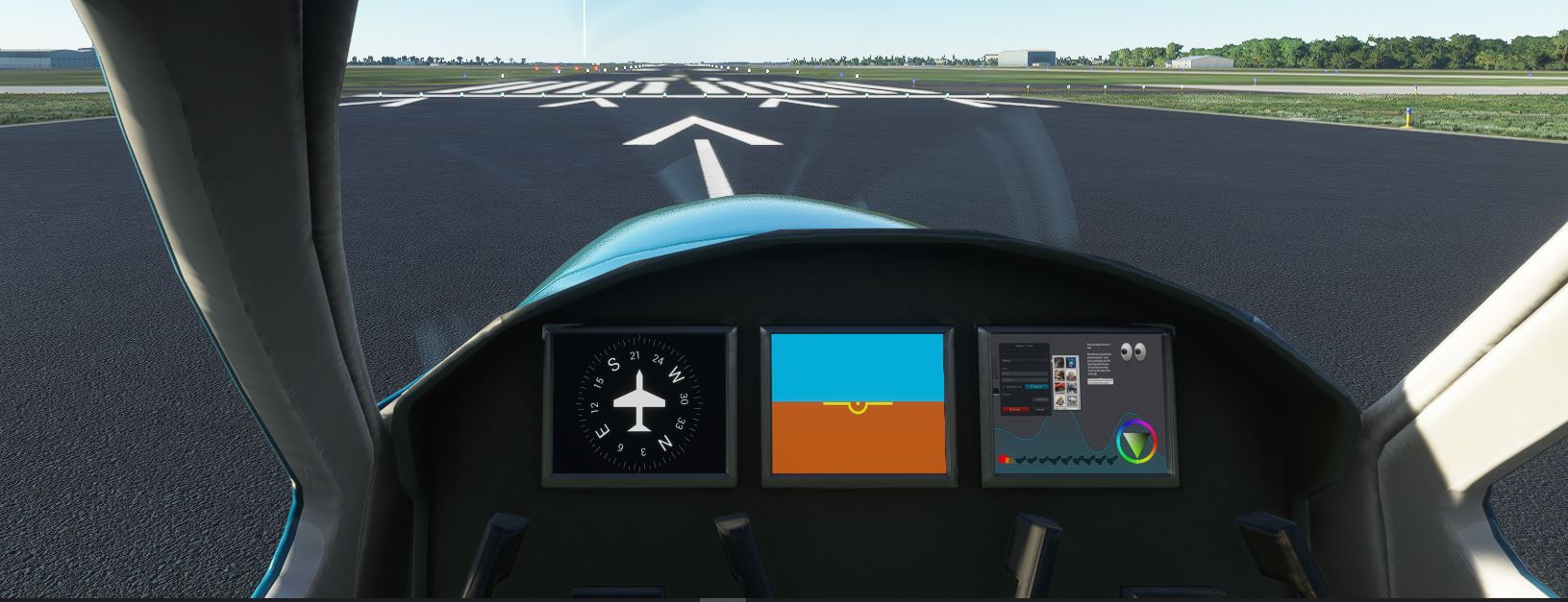 The purpose of this tutorial is to show how to change a small detail. You won’t need understanding of the complete Gauges API to run this. I will show how to do a very minor change to the left instrument, which is the compass.