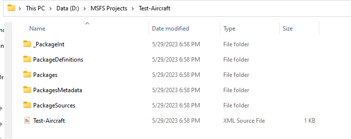 Click PackageSources > SimObjects > Airplanes > “Your Project Name”
