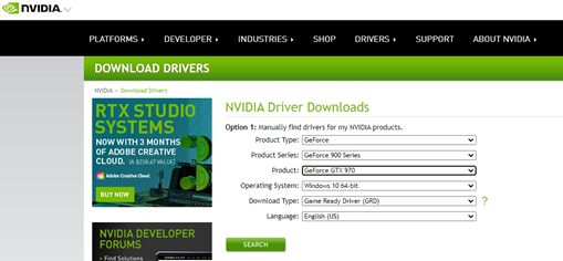 Download the latest software for your PC’s graphics card from Download The Latest Official NVIDIA Drivers
