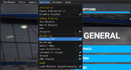 - From the main MSFS Welcome screen click on “Options”, then click “General”, then click “Developers”